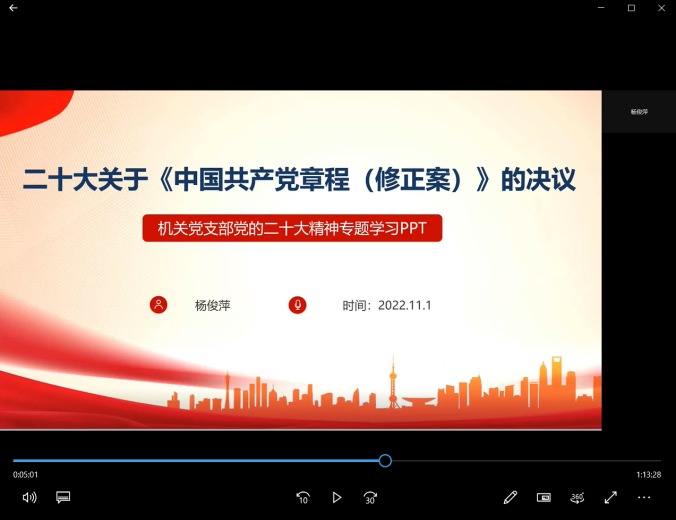 11月1日,隴神戎發機關黨支部以騰訊會議形式開展11月主題黨日活動,專題學習黨的二十大精神。