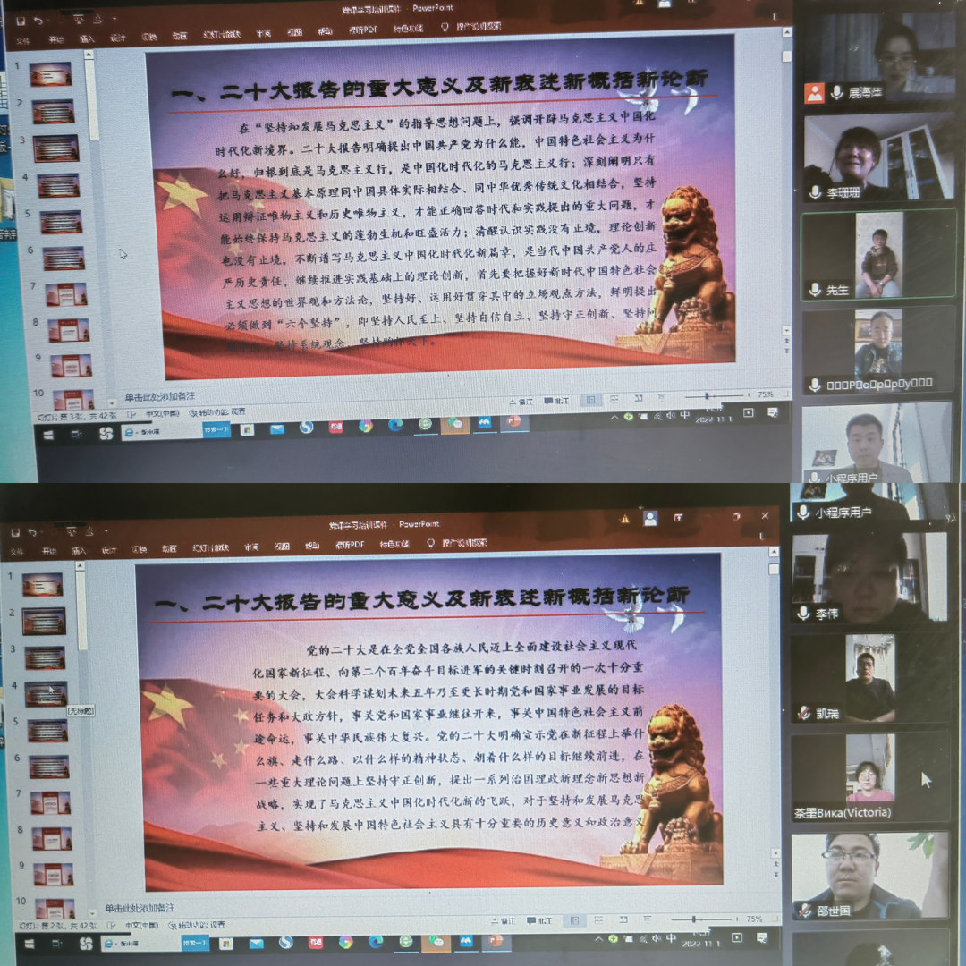 近日,新絲路公司黨支部線上開展了“黨的二十大報(bào)告專題學(xué)習(xí)”主題黨日活動(dòng)和新黨章學(xué)習(xí)培訓(xùn),充分學(xué)習(xí)黨的二十大召開重要意義和會(huì)議精神,把全員思想和行動(dòng)統(tǒng)一到黨的二十大精神上,把黨的二十大精神貫徹落實(shí)到各項(xiàng)工作中,為保障新絲路公司全年任務(wù)目標(biāo)圓滿完成和推進(jìn)隴神戎發(fā)實(shí)現(xiàn)高質(zhì)量發(fā)展賦能。