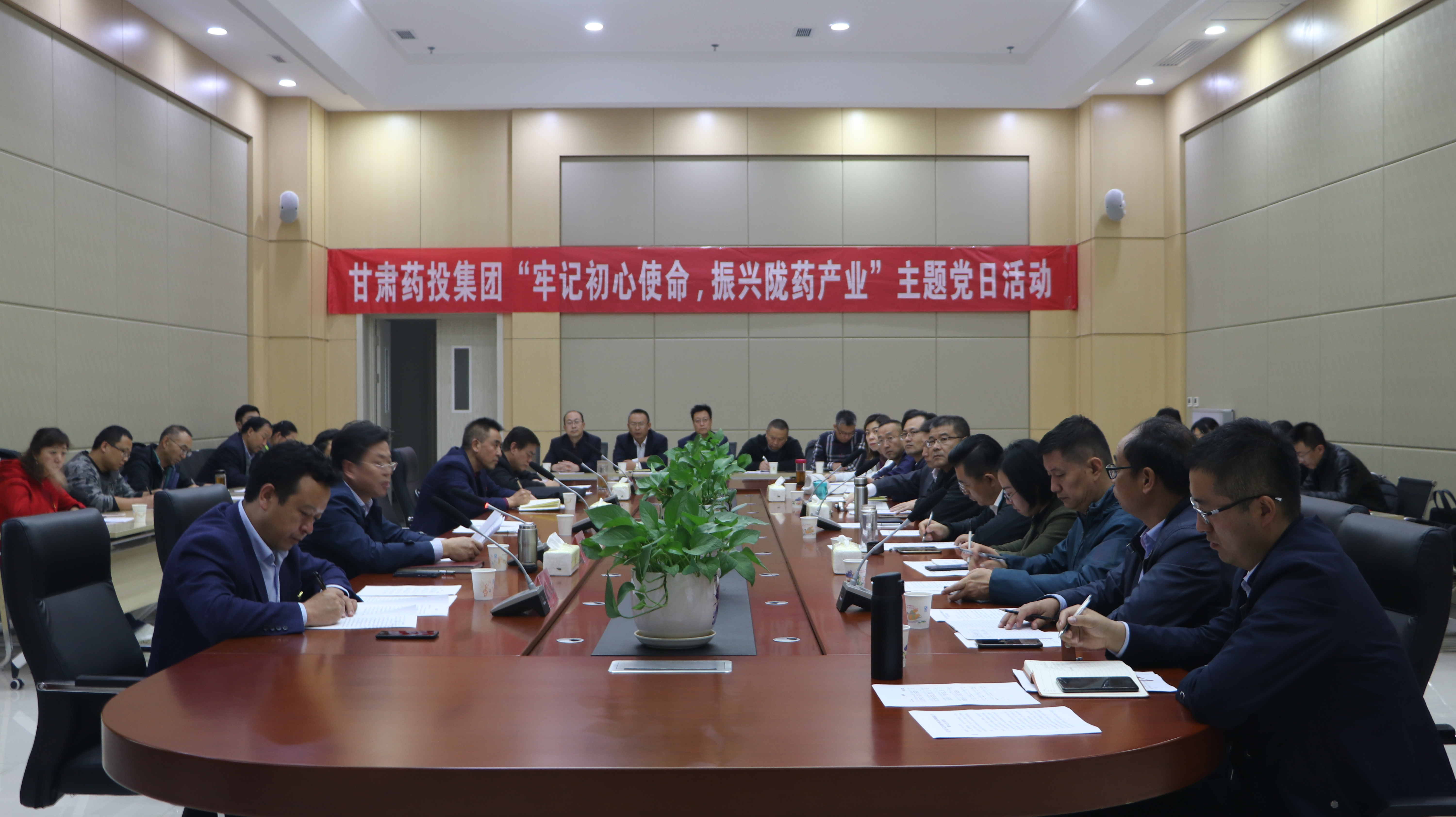 會上,甘肅藥投集團黨委書記、董事長李永平指出,這次主題黨日活動是集團公司慶祝新中國成立70周年系列活動的重要內容,也是深入學習貫徹習近平總書記視察甘肅重要講話精神的實際行動。集團公司在過去的一年中,圓滿完成了籌備組建任務,集團機關領導班子和工作人員基本到位,職能部門開始運行,劃轉企業人員和黨組織關系平穩交接,整體籌備組建工作走在同期籌建的省屬企業前列。他要求,一定要抓住當前有力時機,把學習貫徹習近平總書記視察甘肅的重要講話精神持續推向深入,以“六老漢”治沙精神為樣板,立下愚公志,鼓足干勁,勇于創新、苦干實干,讓集團公司的發展像八步沙林場一樣生機盎然。要站在新的起點上,堅定信心,充分依靠和發揮豐富的中藥材資源和悠久的中醫藥文化優勢,加快集團核心業務布局和發展。要始終牢記富民興隴、脫貧攻堅、振興隴藥的重大使命,保持創業初期那種一往無前、永不懈怠的精神狀態,確保集團公司始終沿著正確的發展方向前進。要只爭朝夕,工作中不能僅僅是被形勢逼著走,還要積極爭取主動,要既有效率、又要出成果、出效果。要團結奮進,時刻從大局出發想問題、辦事情,要保持清清爽爽的同志關系、規規矩矩的上下級關系,努力營造集團上下神清氣爽的工作環境。