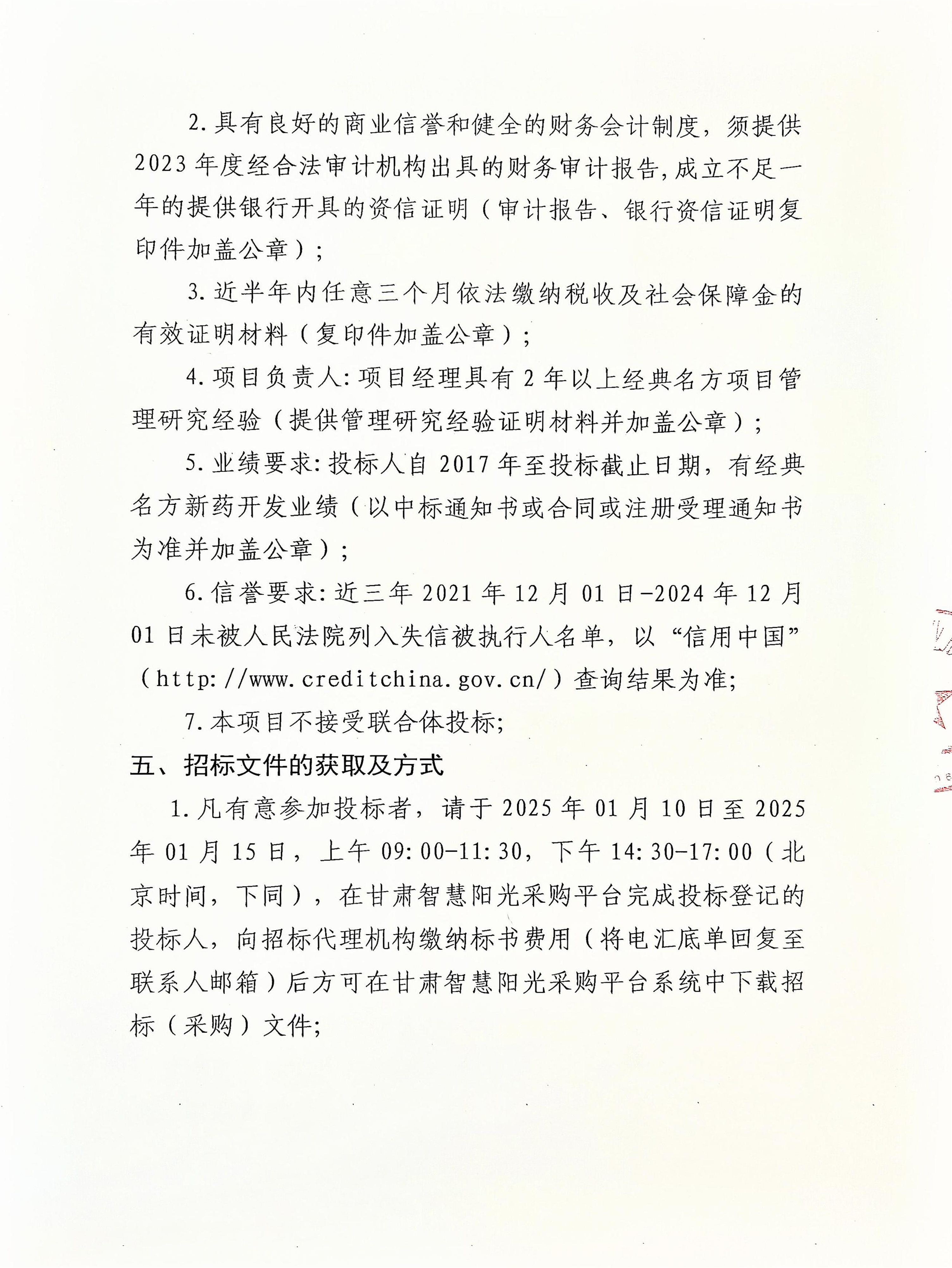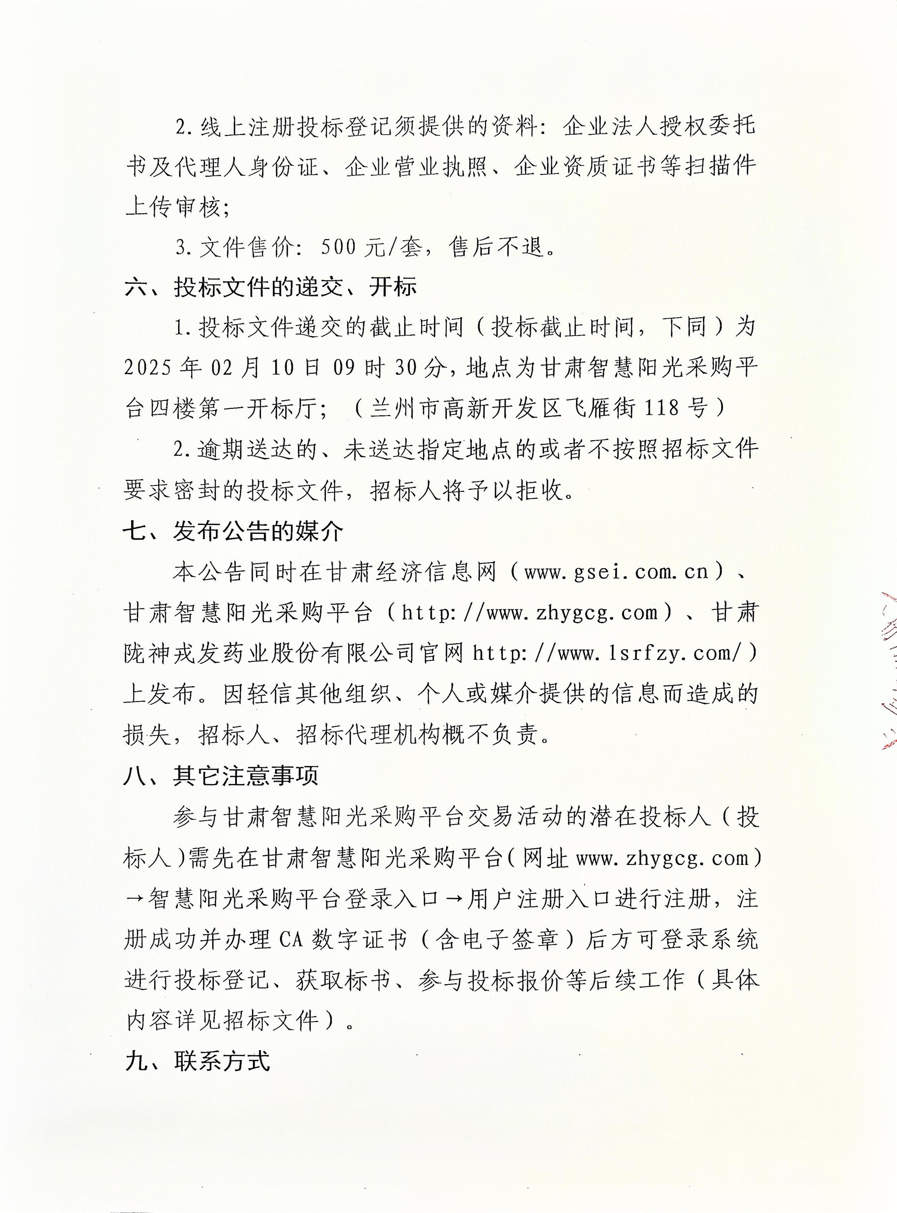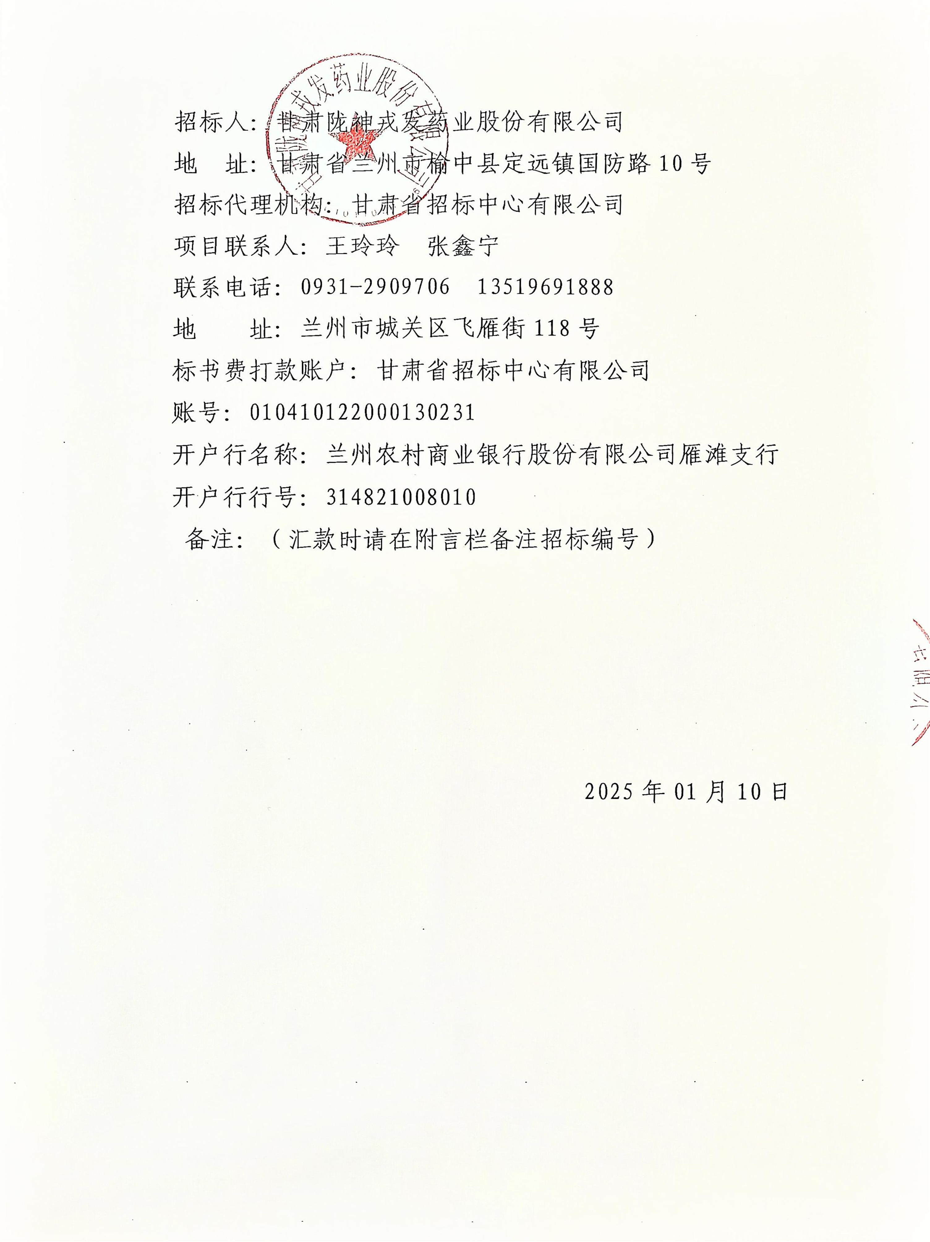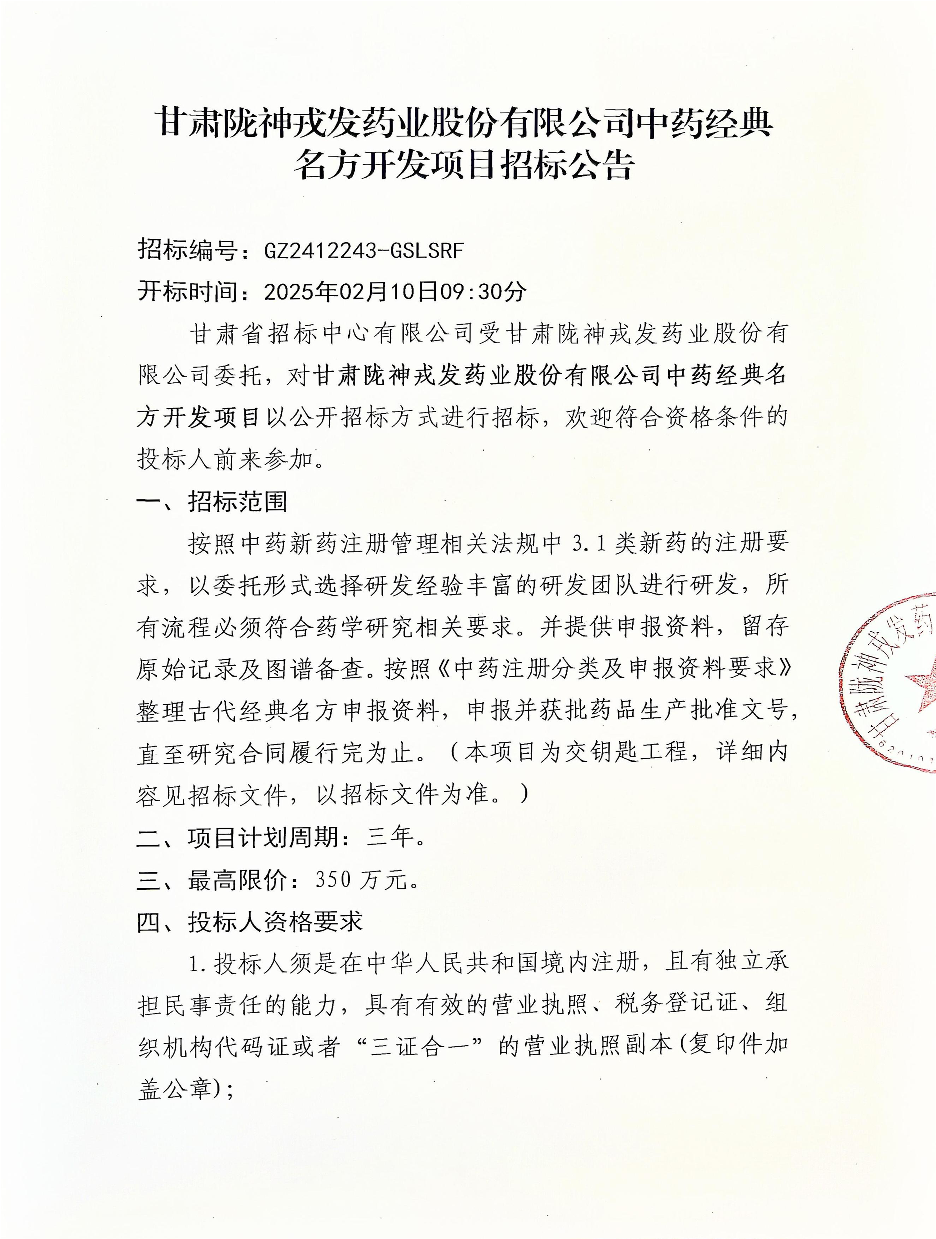 甘肅隴神戎發藥業股份有限公司中藥經典名方開發項目招標公告