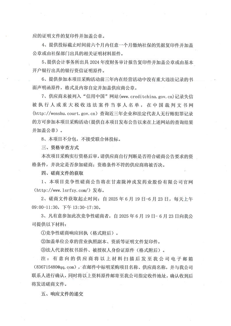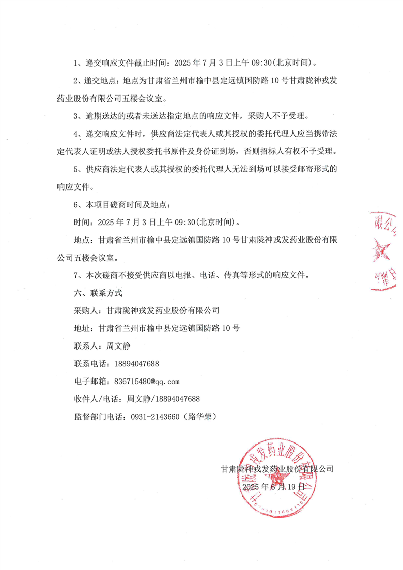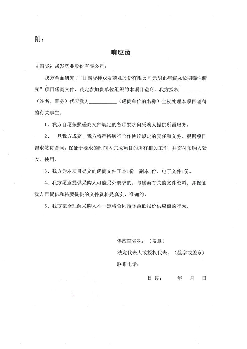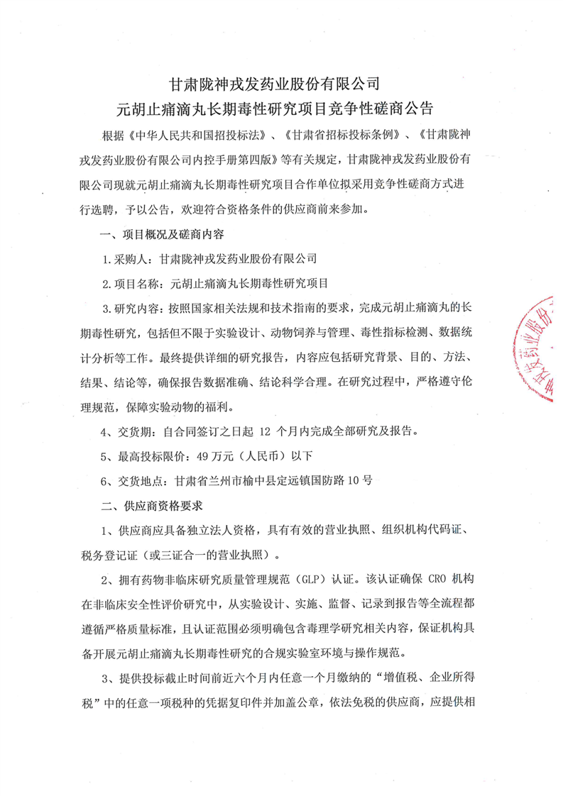 甘肅隴神戎發藥業股份有限公司元胡止痛滴丸長期毒性研究項目競爭性磋商公告