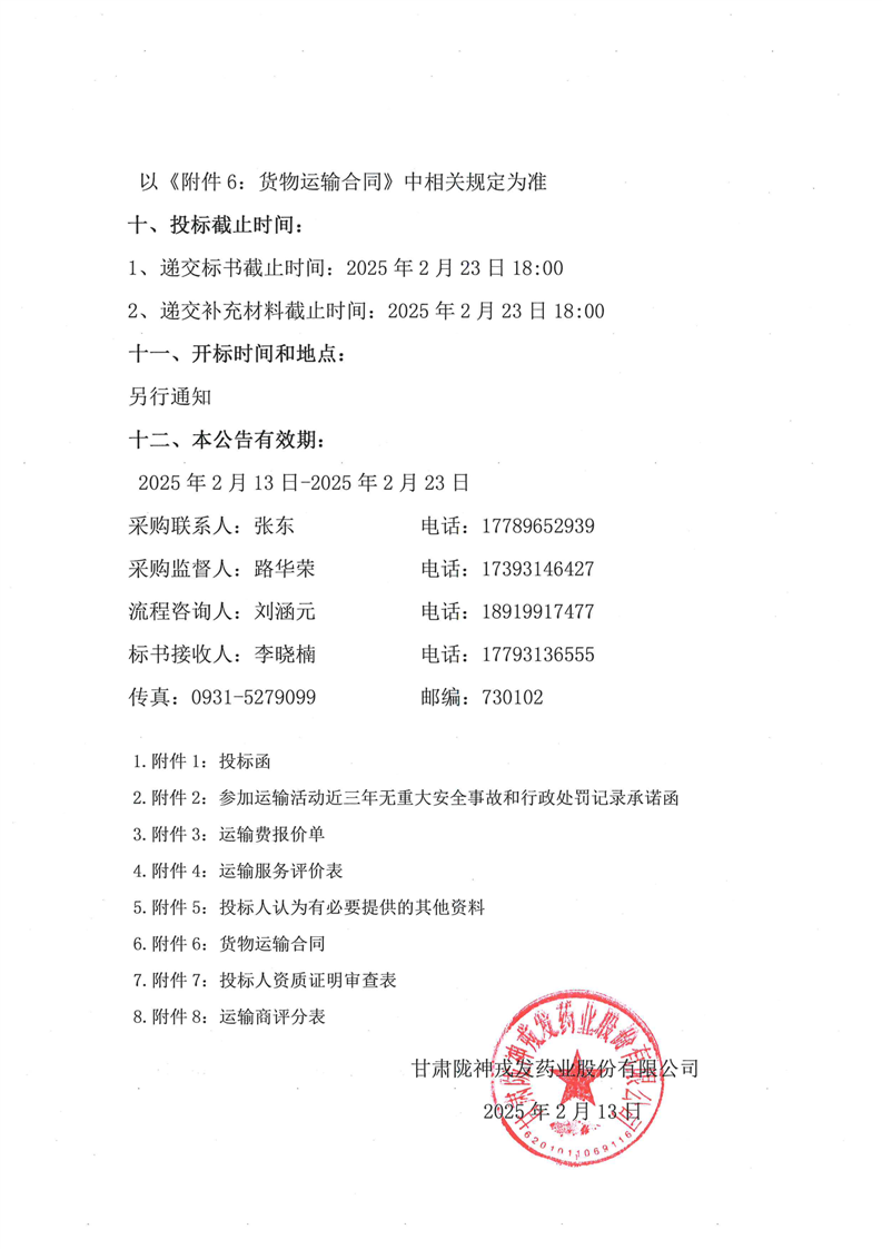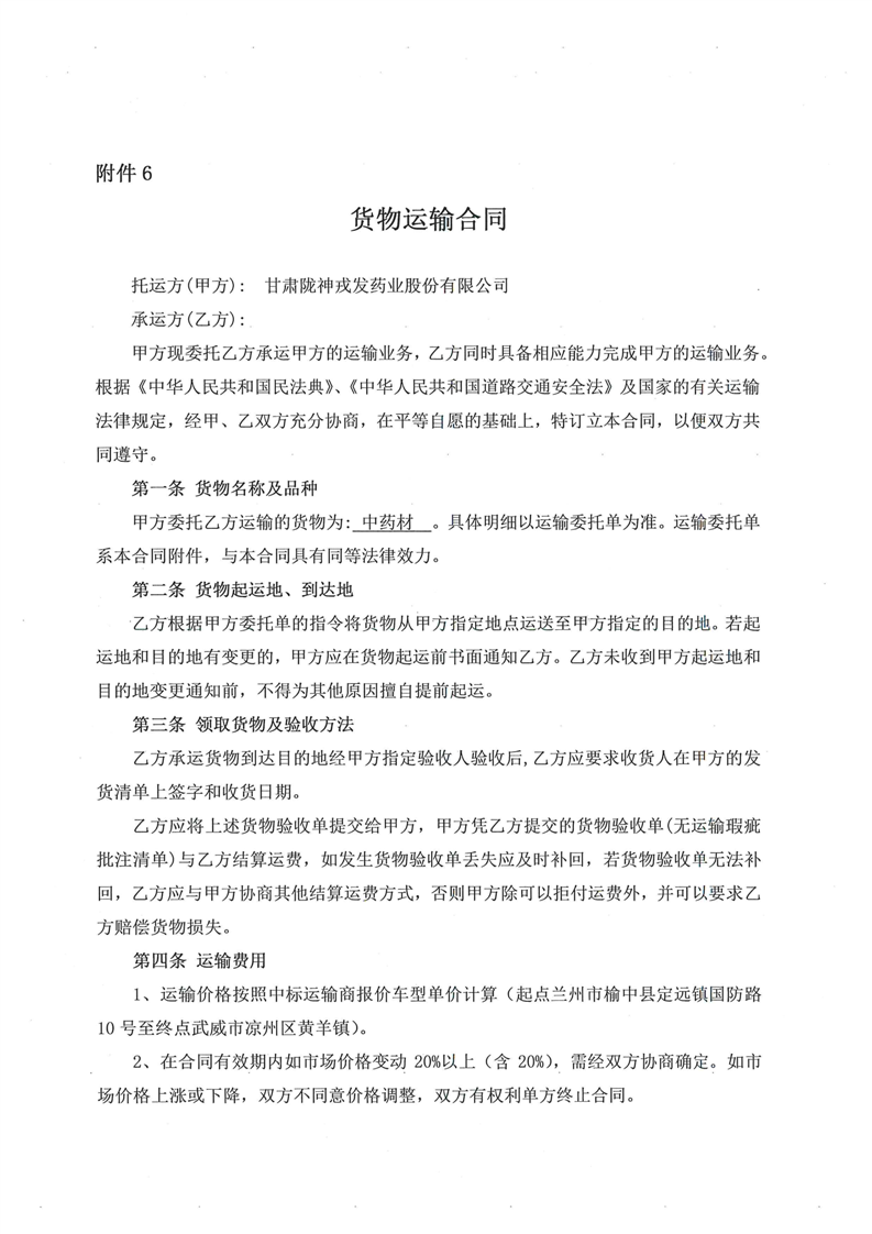 甘肅隴神戎發藥業股份有限公司中藥材運輸服務招標公告