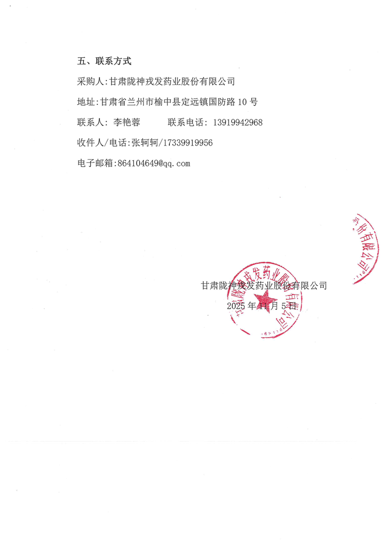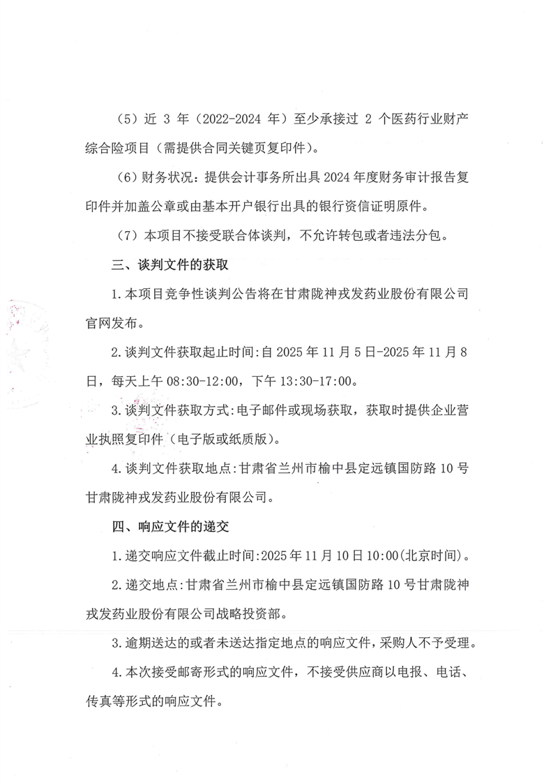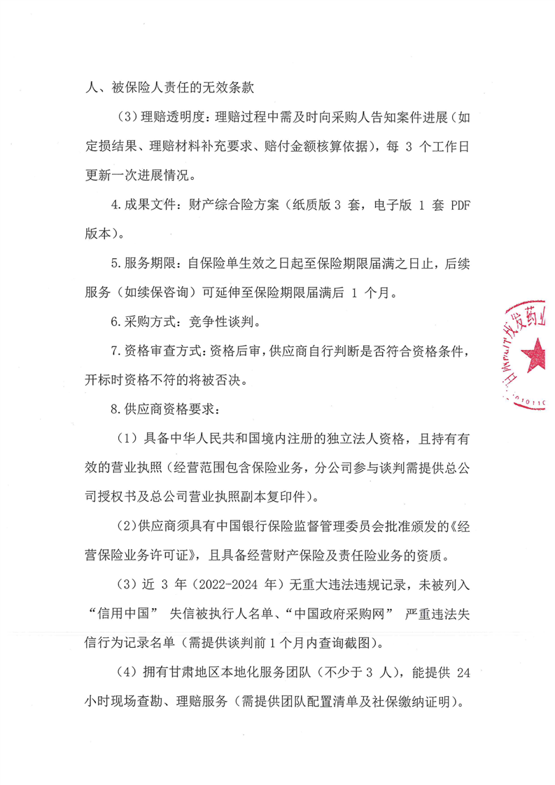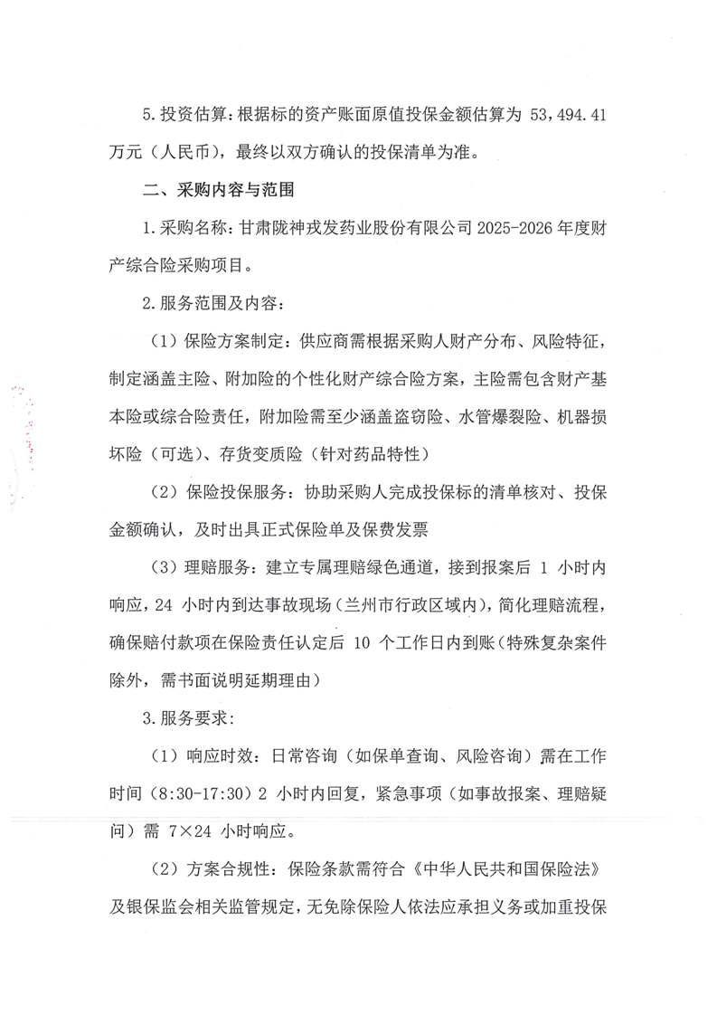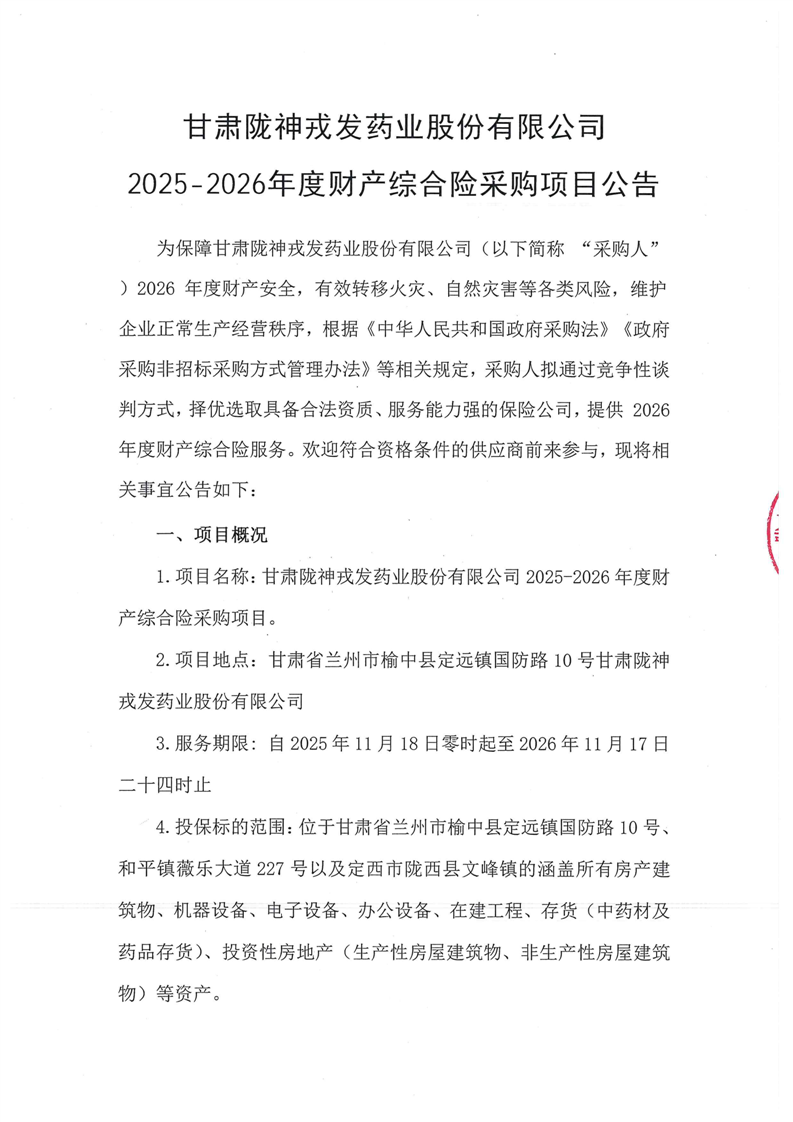 甘肅隴神戎發藥業股份有限公司2025-2026年度財產綜合險采購項目公告