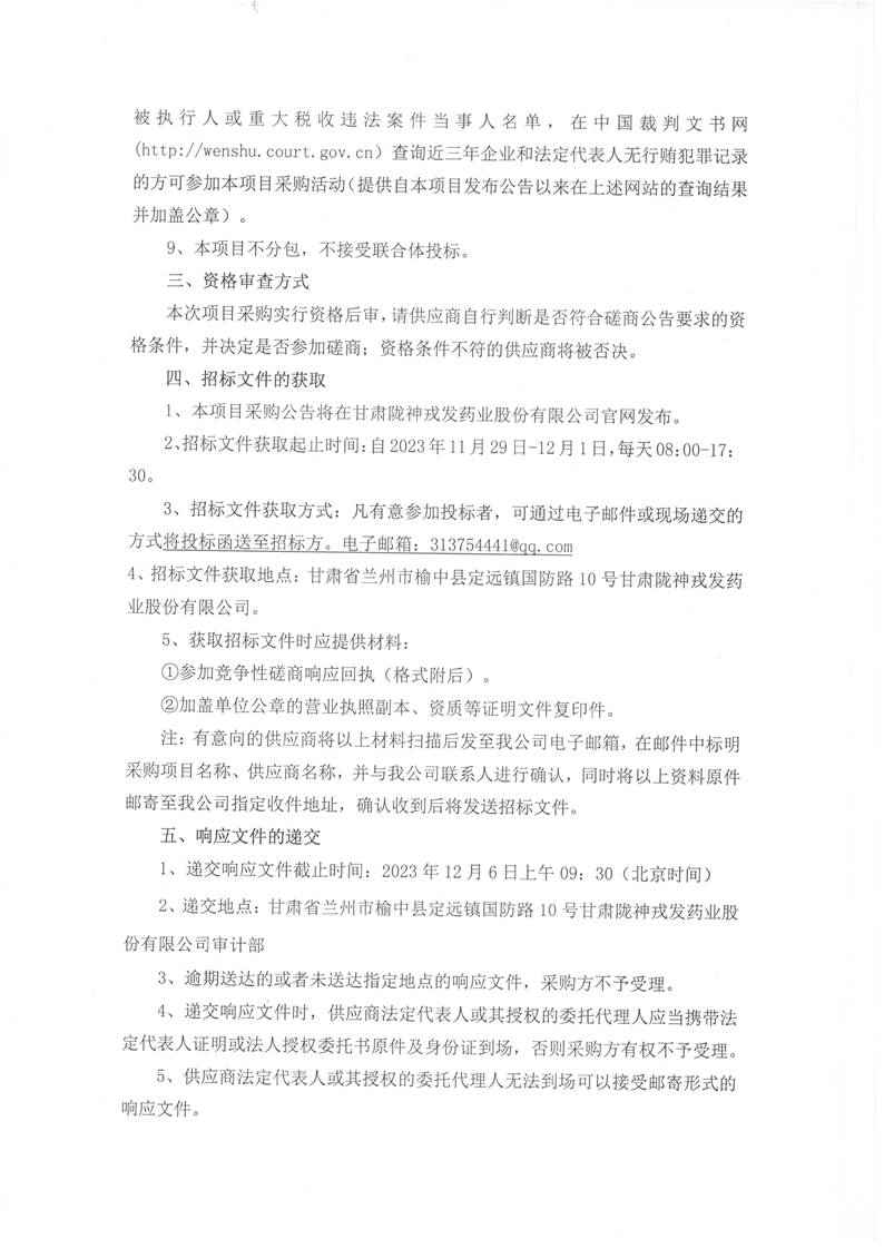 甘肅隴神戎發藥業股份有限公司廠區電梯日常維護保養服務采購競爭性磋商公告