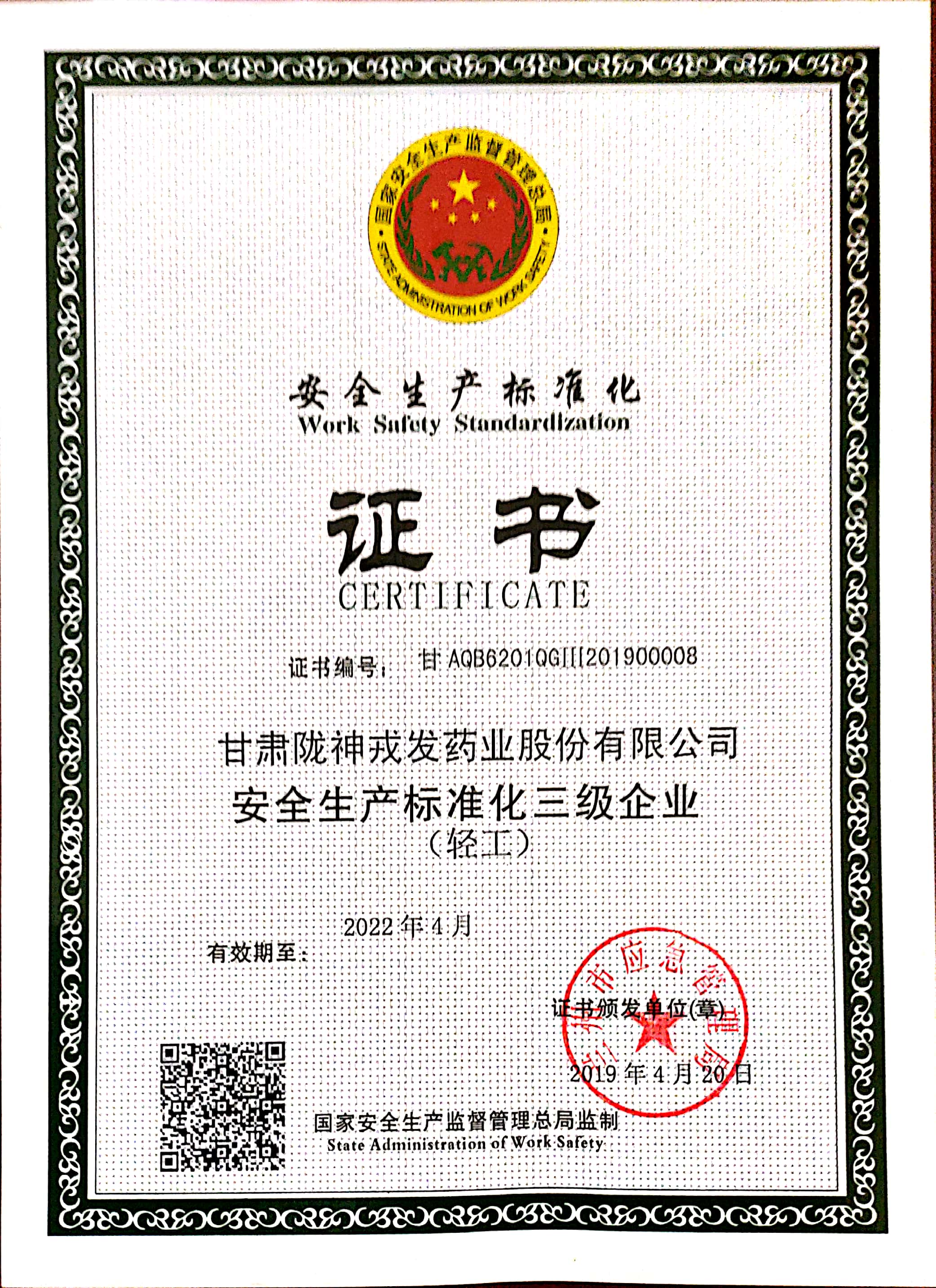 公示:公司取得安全生產(chǎn)標(biāo)準(zhǔn)化三級企業(yè)(輕工)證書