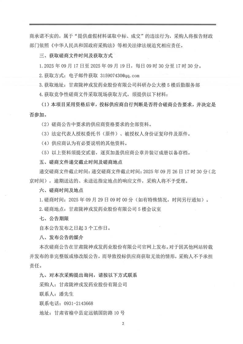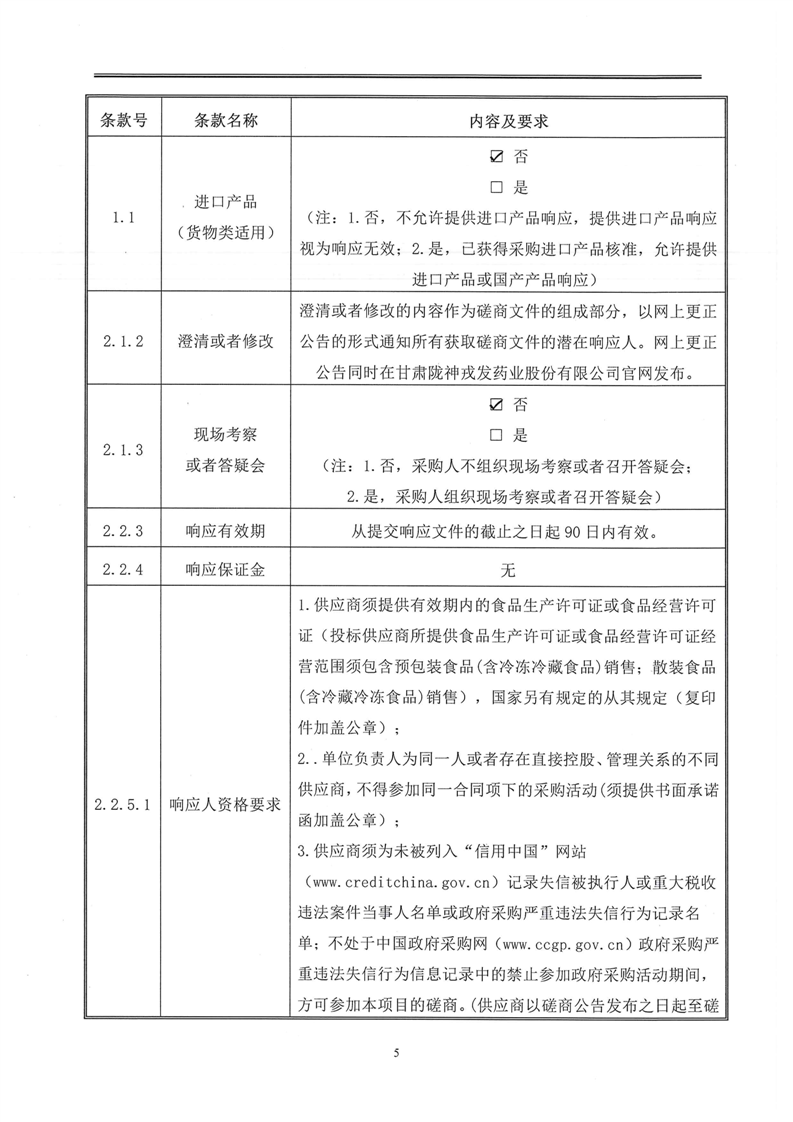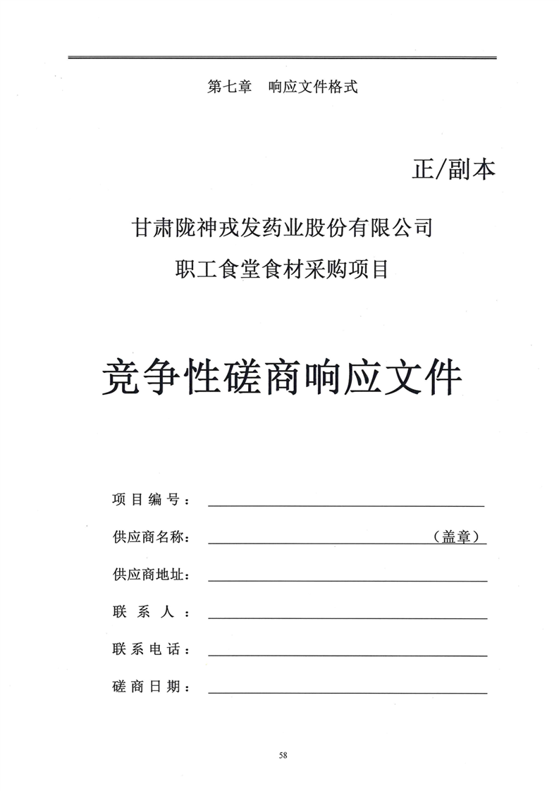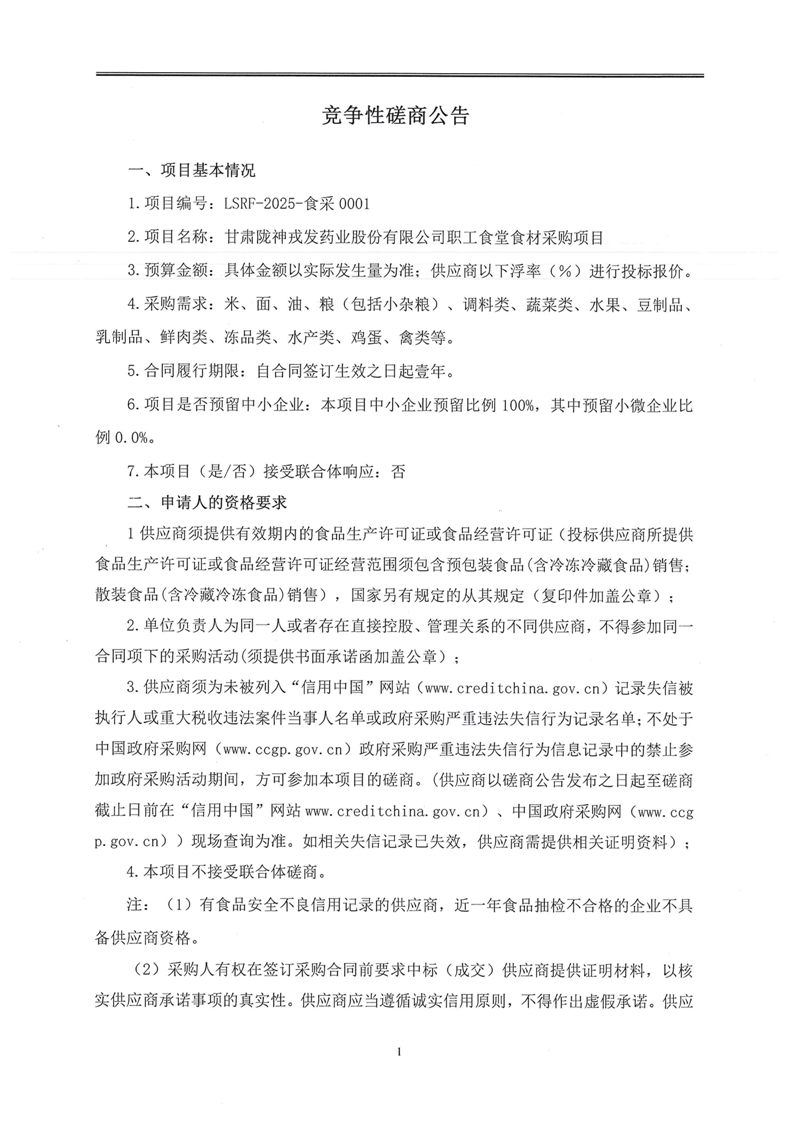 甘肅隴神戎發藥業股份有限公司職工食堂食材采購項目競爭性磋商文件