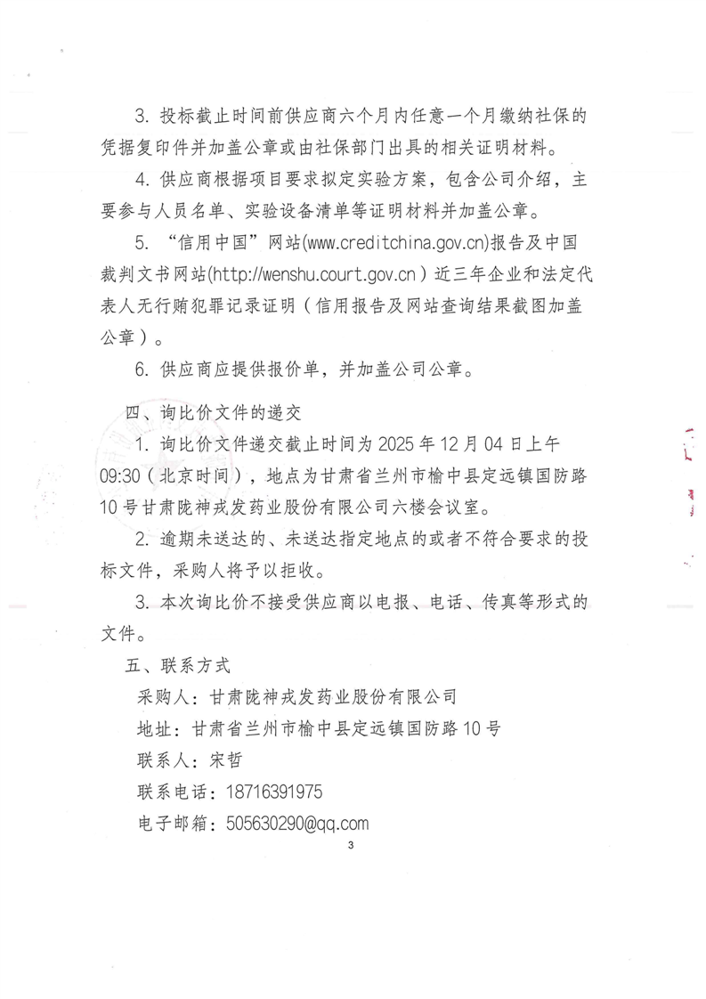 甘肅隴神戎發(fā)藥業(yè)股份有限公司酸棗仁油物質(zhì)組成分研究技術(shù)服務(wù)詢(xún)價(jià)公告