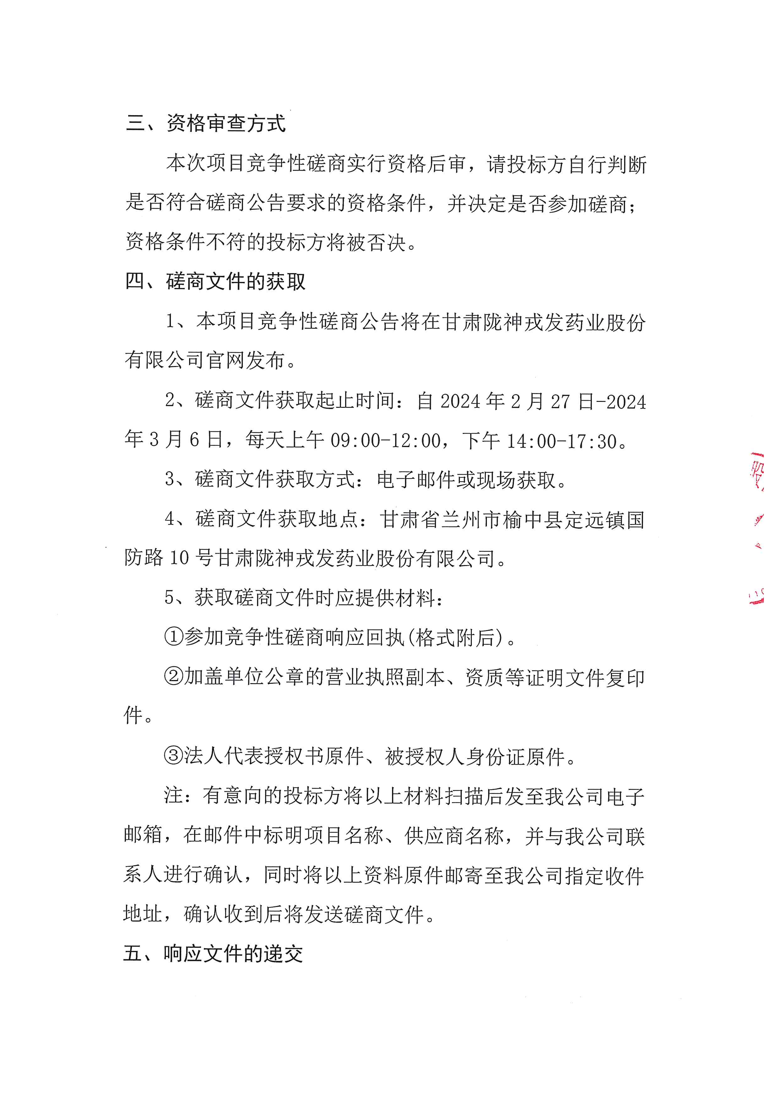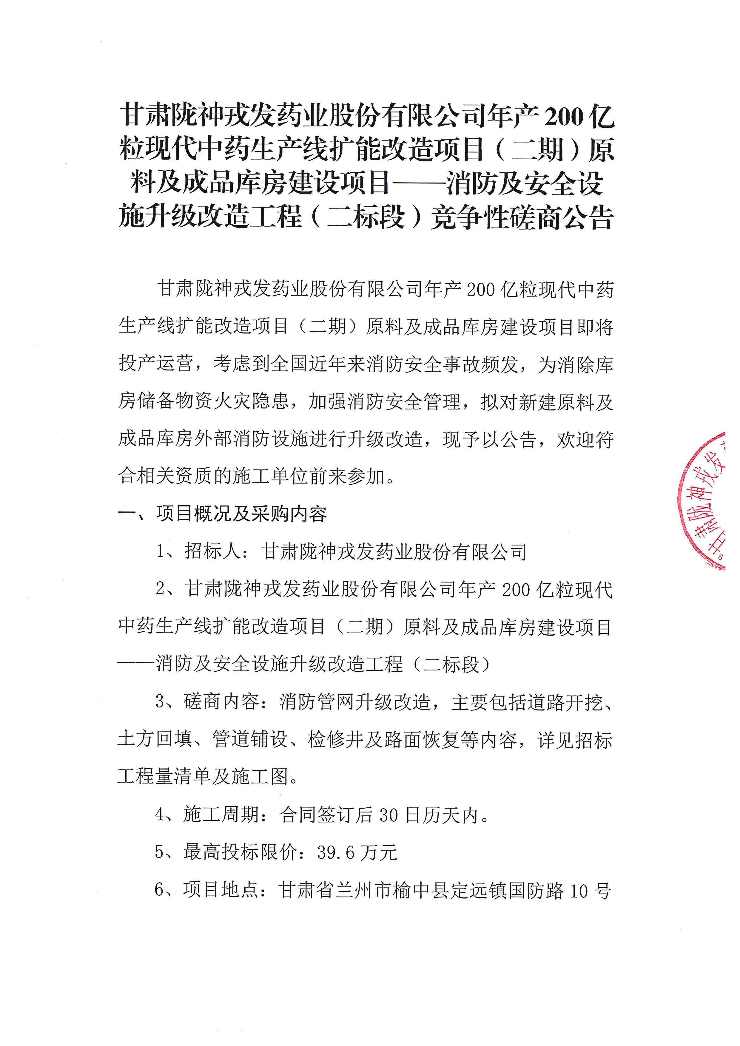 甘肅隴神戎發藥業股份有限公司年產200億粒現代中藥生產線擴能改造項目(二期)原料及成品庫房建設項目——消防及安全設施升級改造工程(二標段)競爭性磋商公告