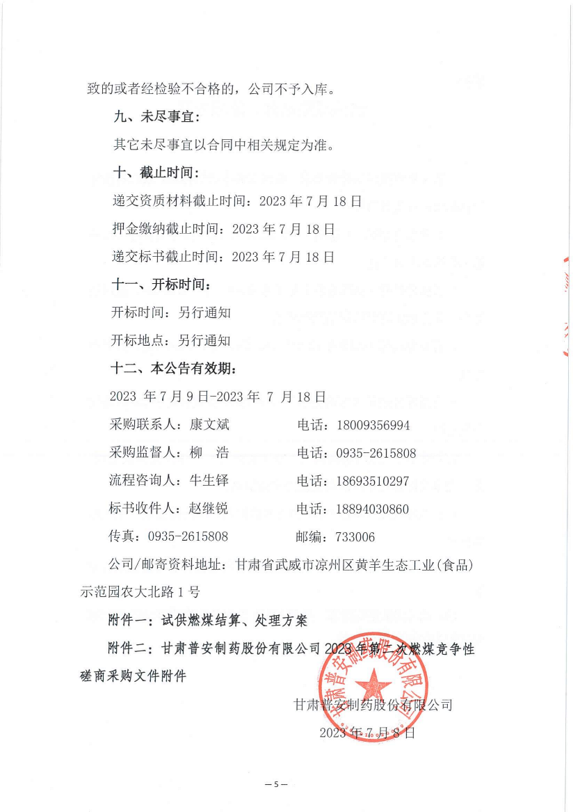 甘肅普安制藥股份有限公司2023年第二次燃煤采購競爭性磋商公告