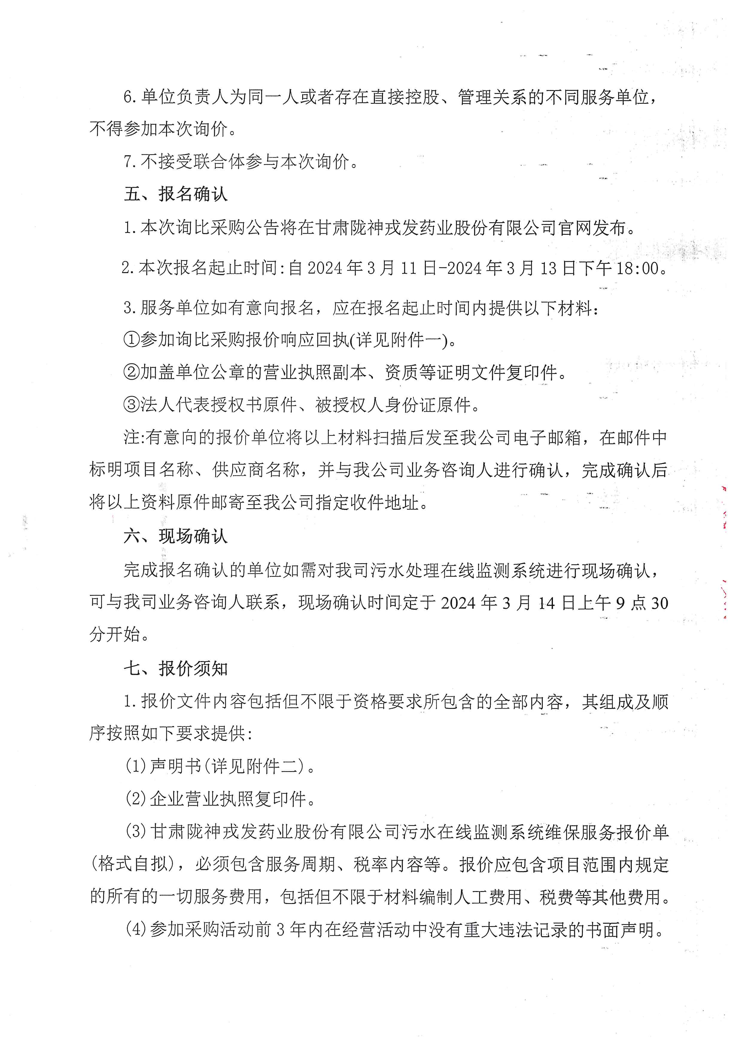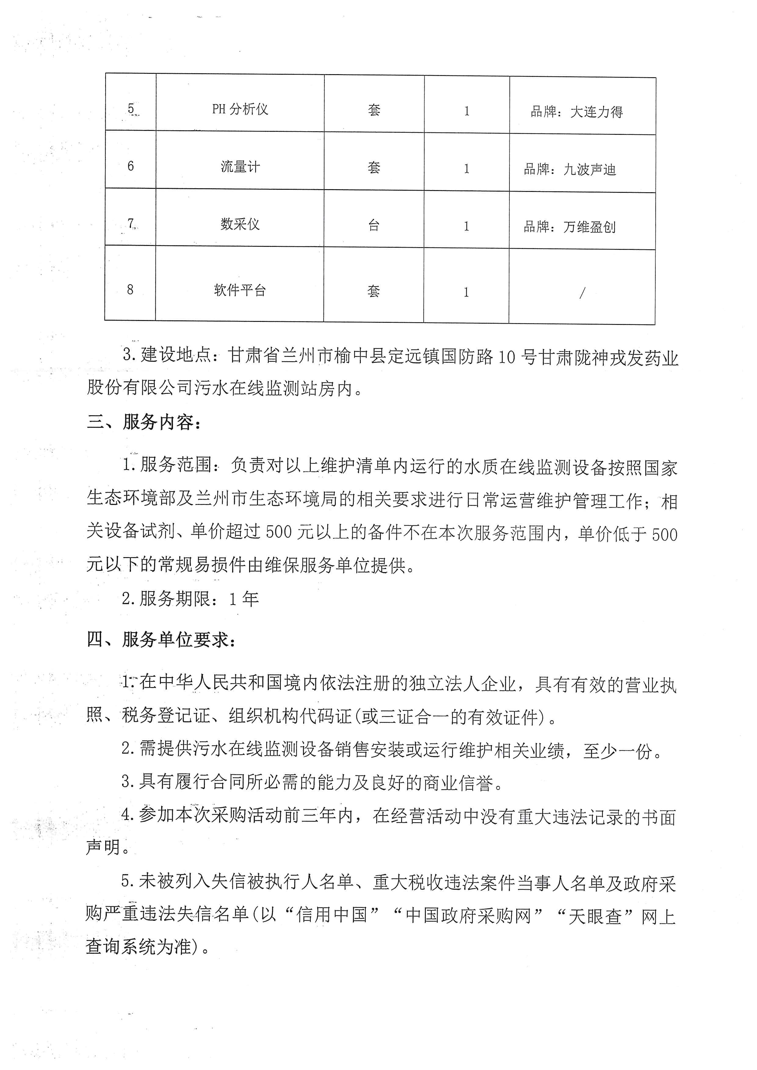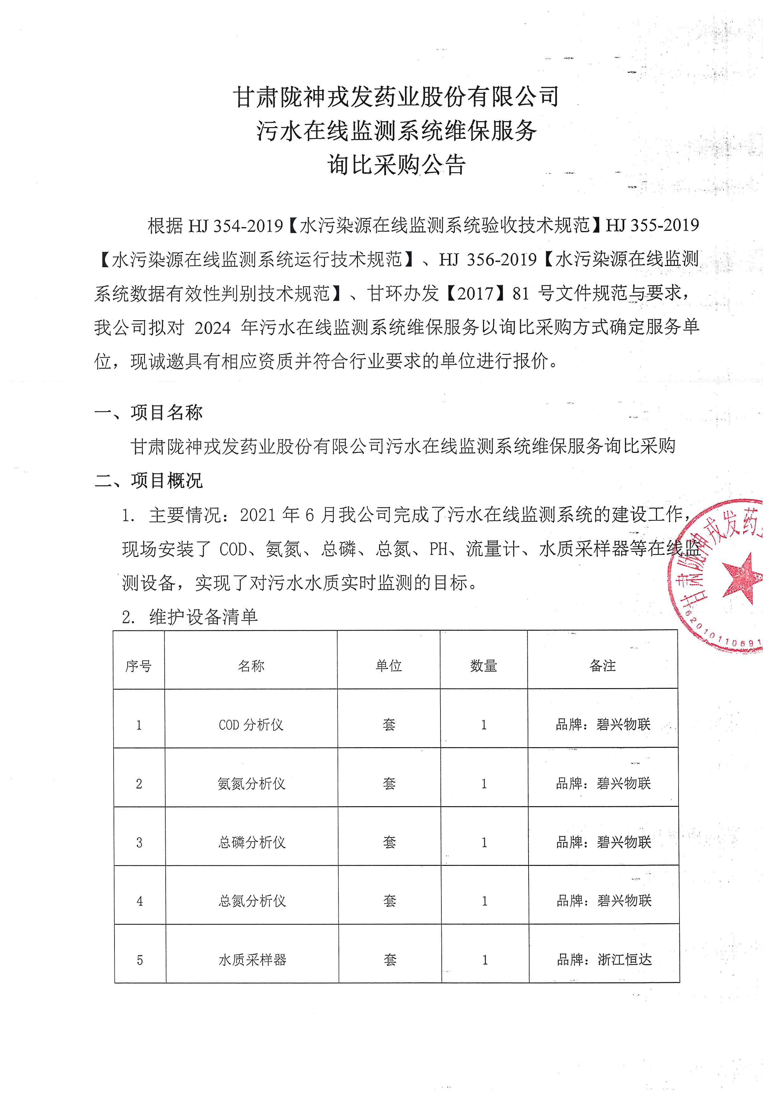甘肅隴神戎發(fā)藥業(yè)股份有限公司污水在線監(jiān)測(cè)系統(tǒng)維保服務(wù)詢比采購(gòu)公告