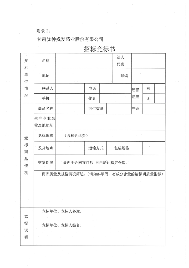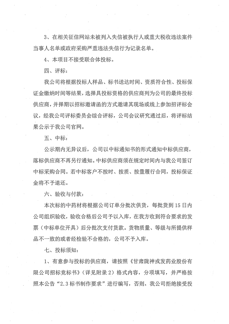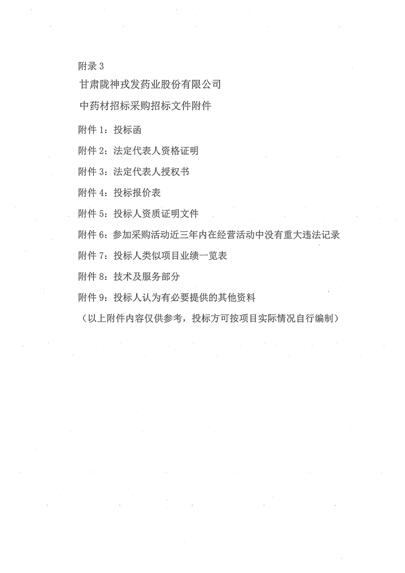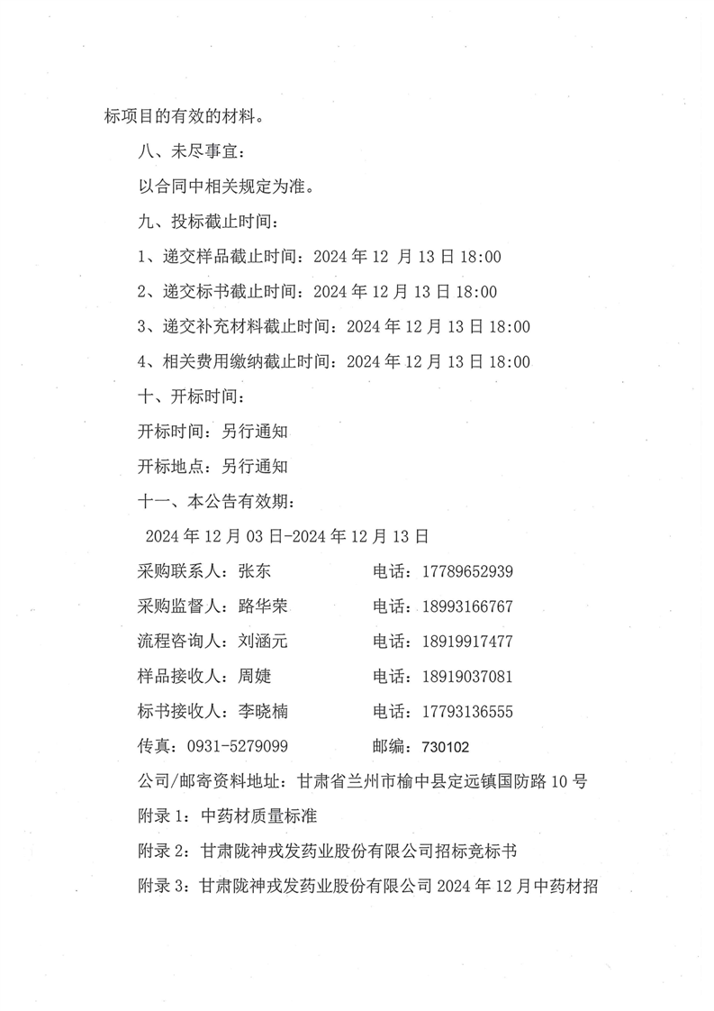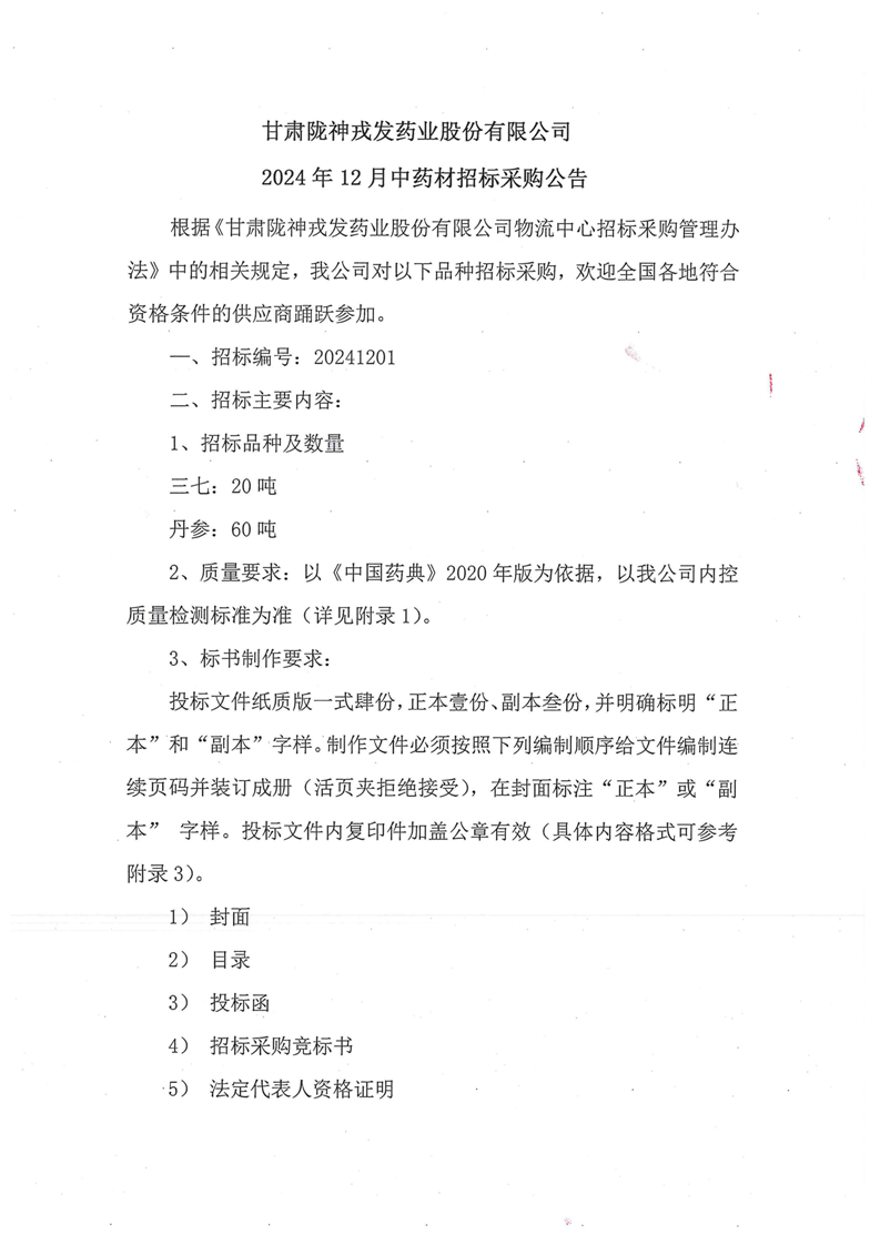 甘肅隴神戎發藥業股份有限公司2024年12月中藥材招標采購公告