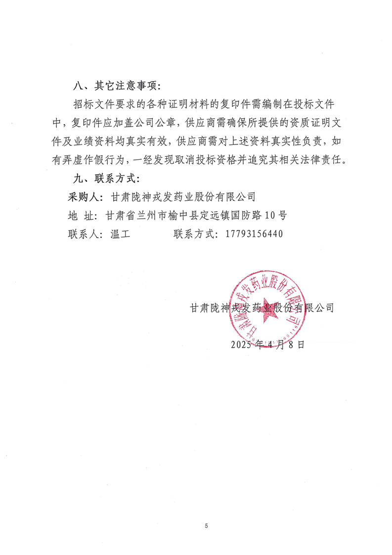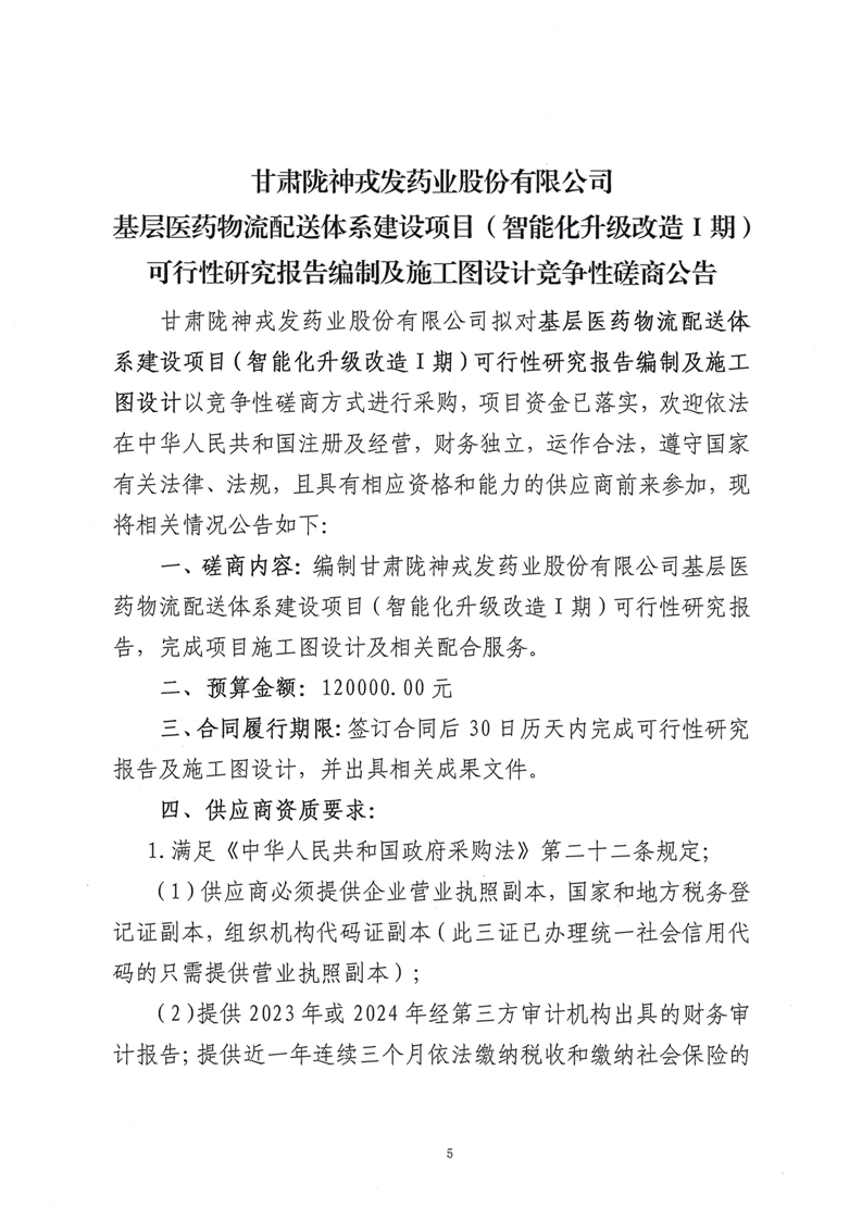 甘肅隴神戎發藥業股份有限公司基層醫藥物流配送體系建設項目(智能化升級改造Ⅰ期)可行性研究報告編制及施工圖設計競爭性磋商公告