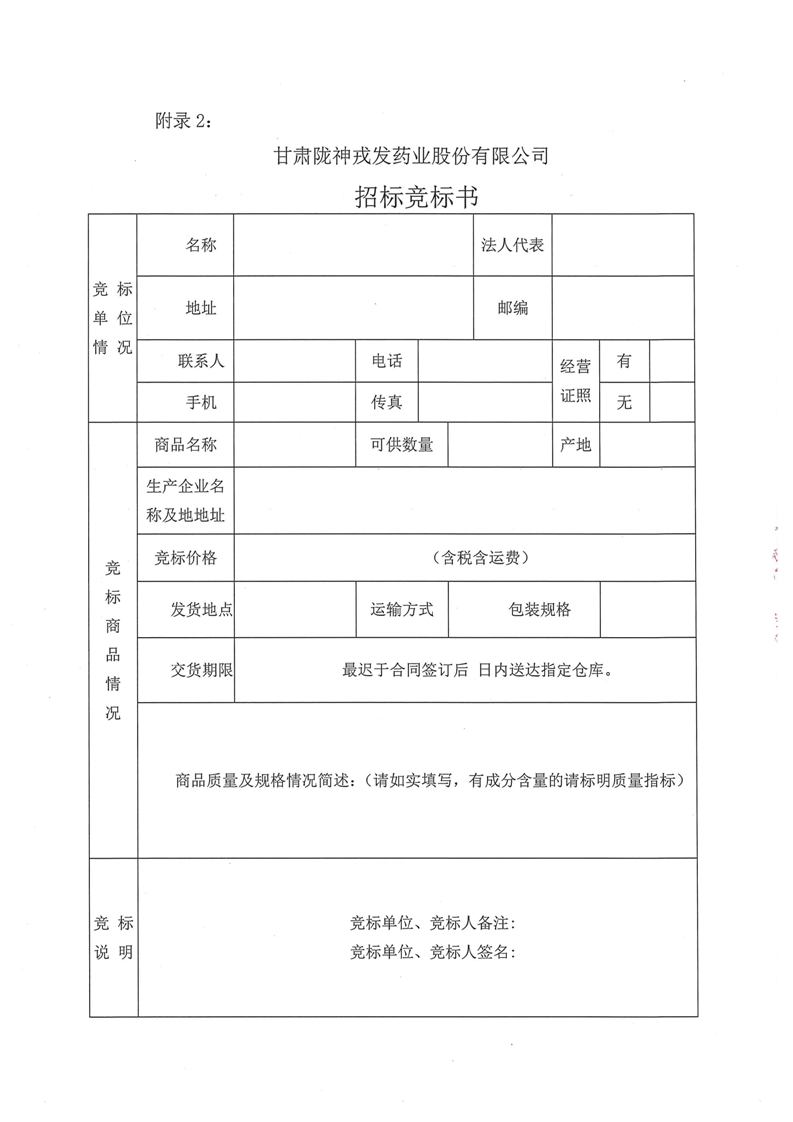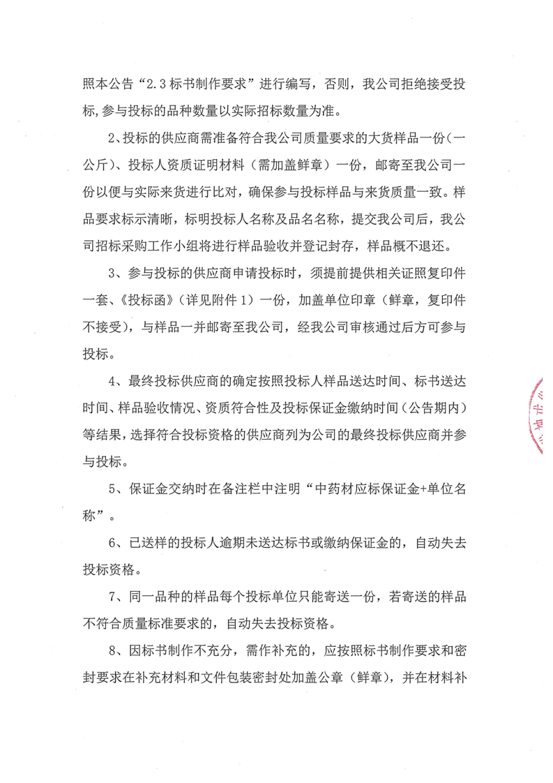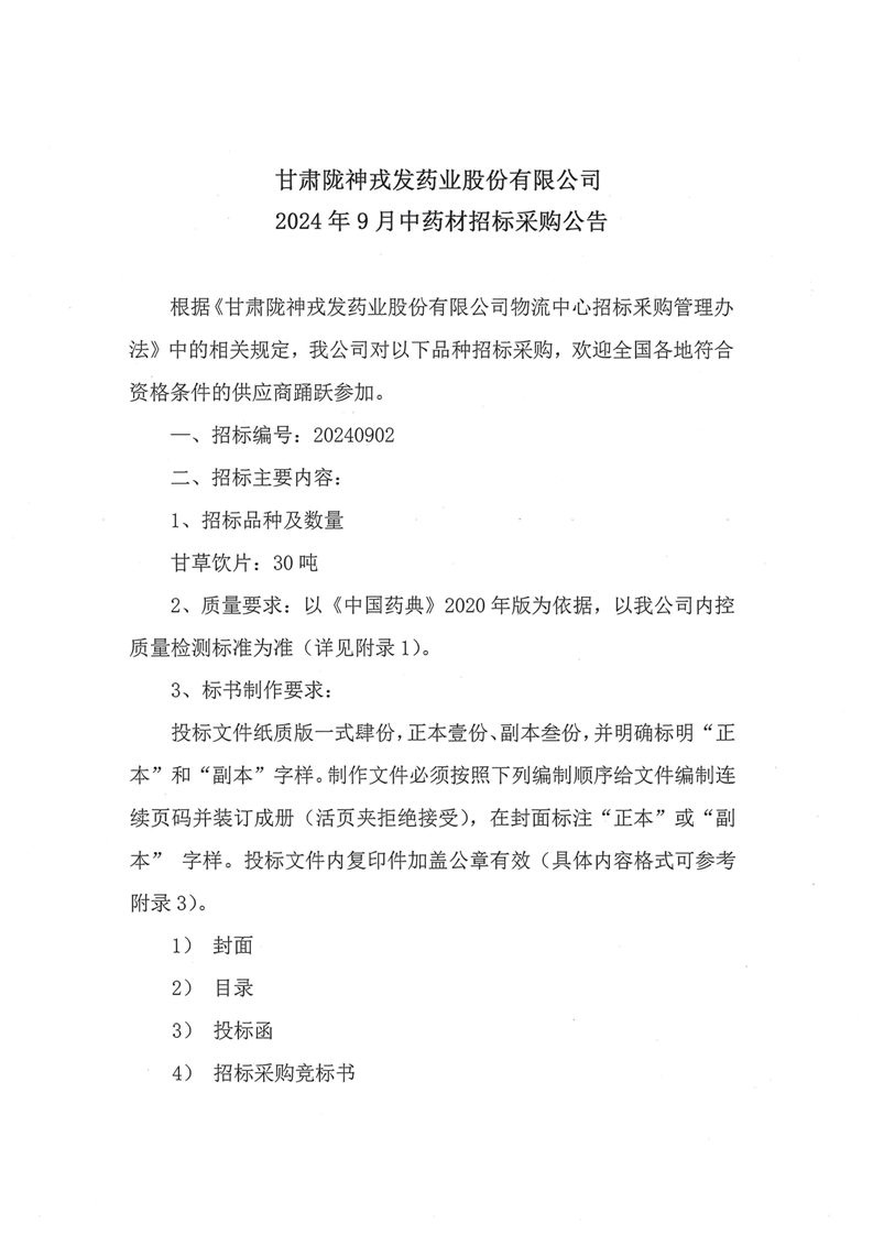 甘肅隴神戎發藥業股份有限公司2024年9月中藥材招標采購公告