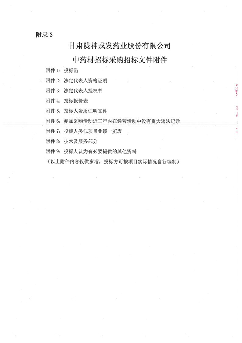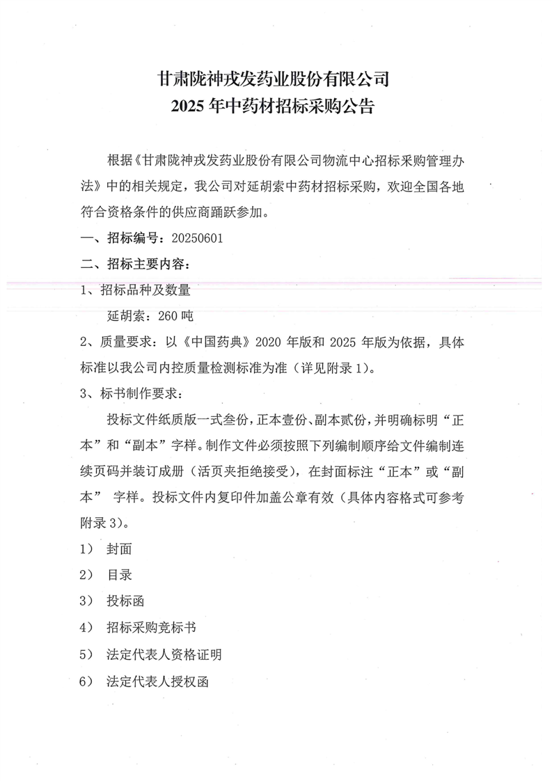 甘肅隴神戎發藥業股份有限公司2025年中藥材招標采購公告
