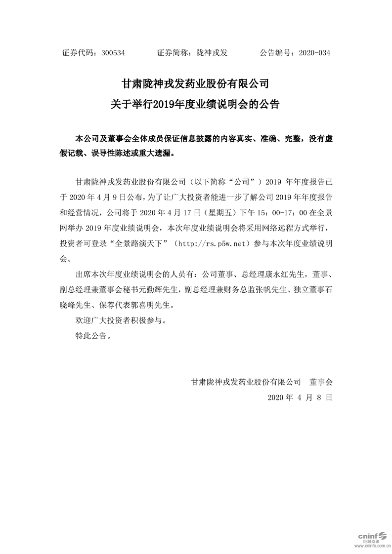 關于舉行2019年度業(yè)績說明會的公告