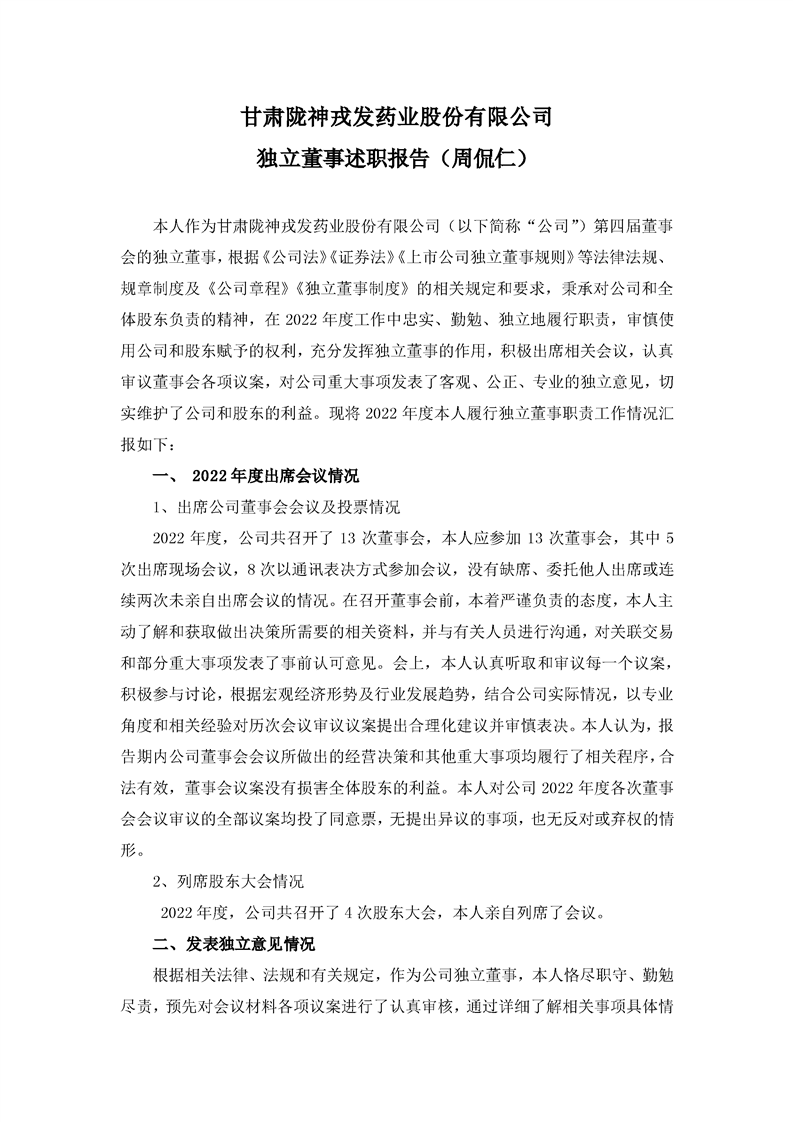 2022年獨(dú)立董事述職報(bào)告(周侃仁)