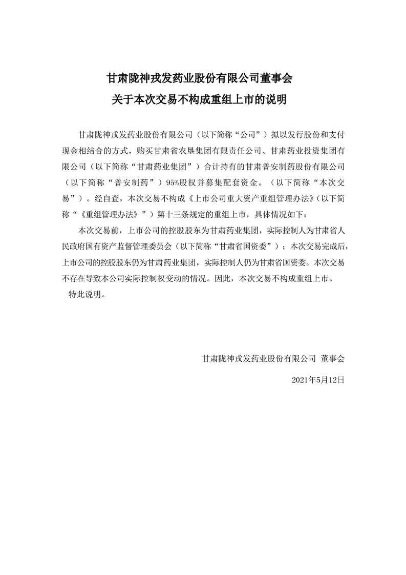董事會關于本次交易不構成重組上市的說明