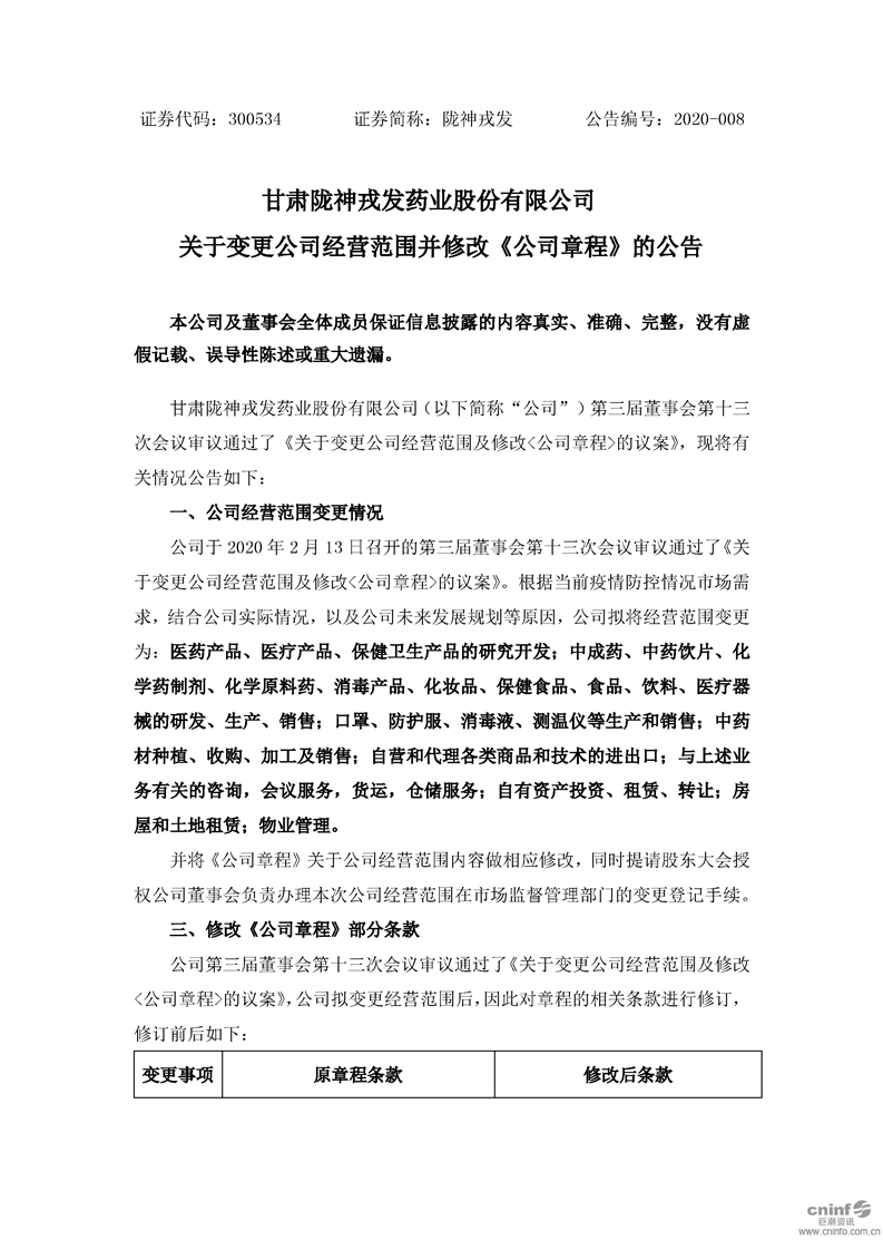 關于變更公司經營范圍并修改《公司章程》的公告