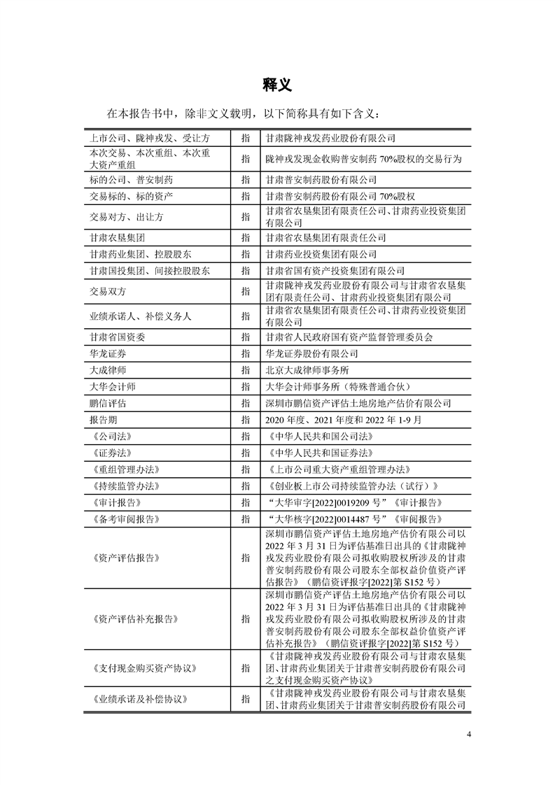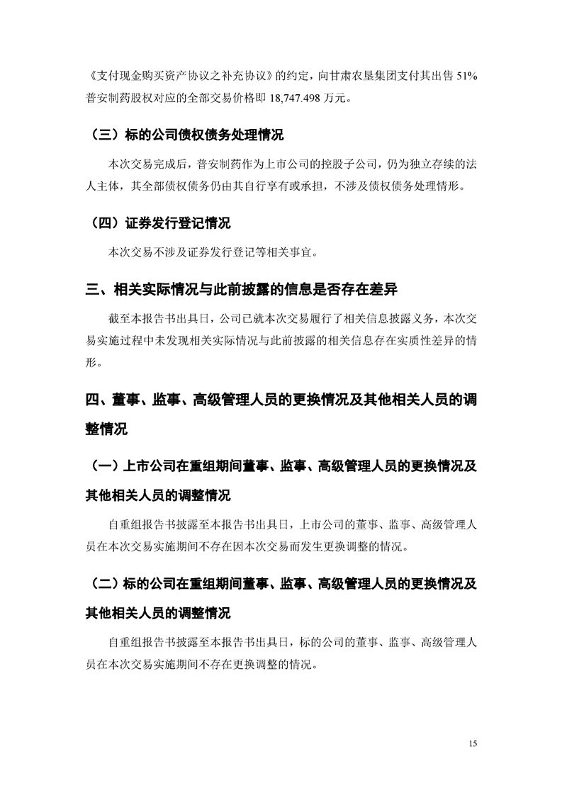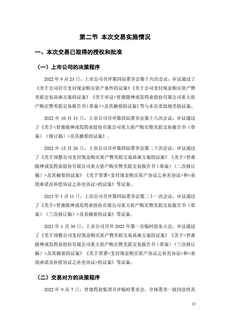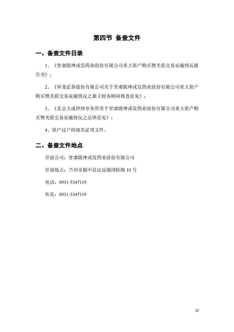 甘肅隴神戎發藥業股份有限公司重大資產購買暨關聯交易實施情況報告書