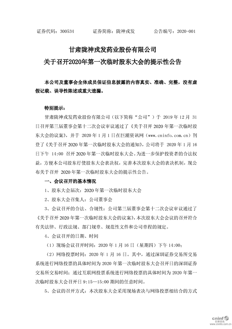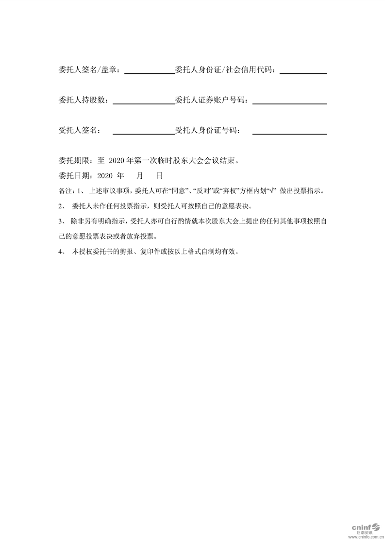 關于召開2020年第一次臨時股東大會的提示性公告