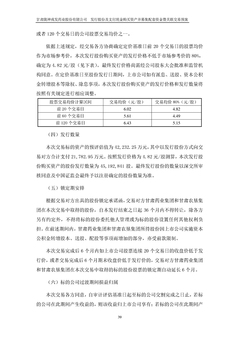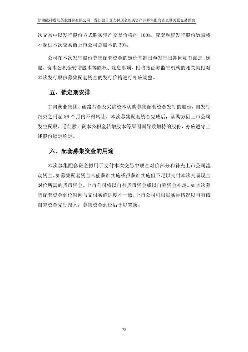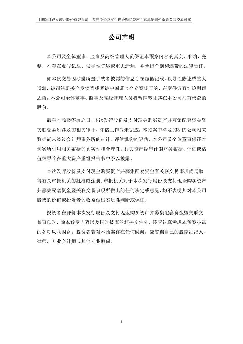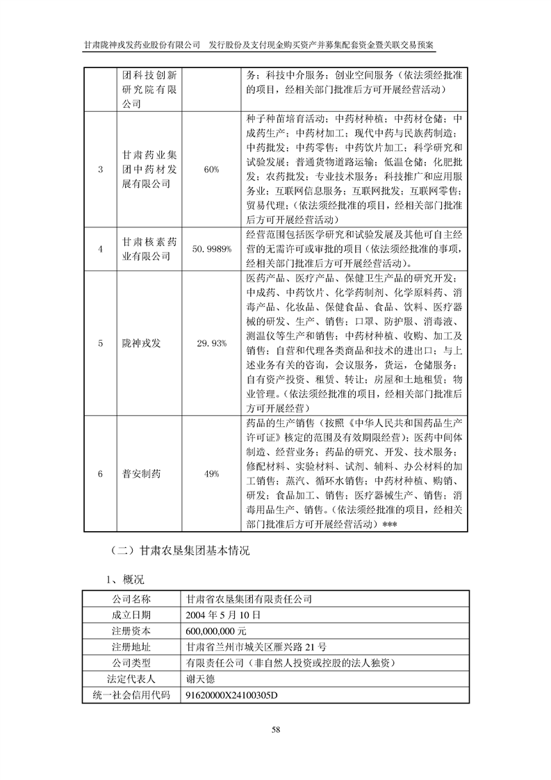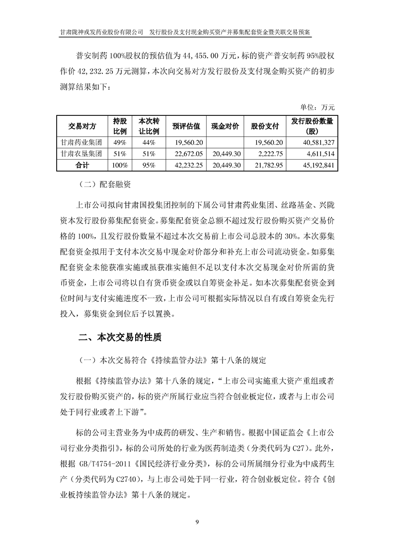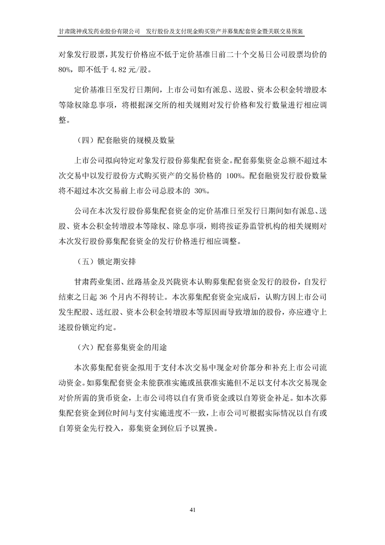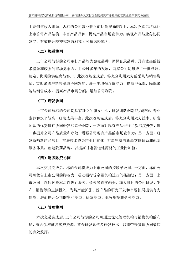 甘肅隴神戎發藥業股份有限公司發行股份及支付現金購買資產并募集配套資金暨關聯交易預案