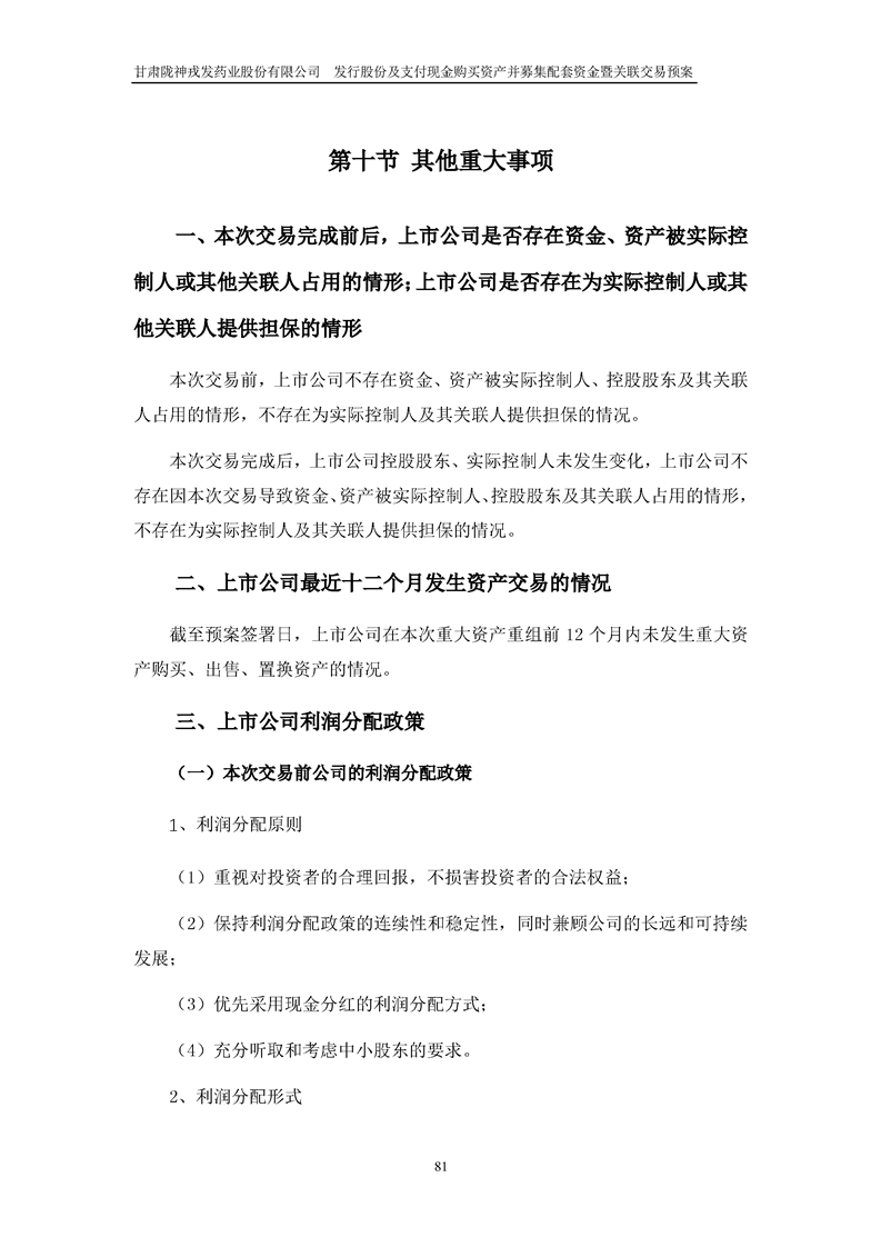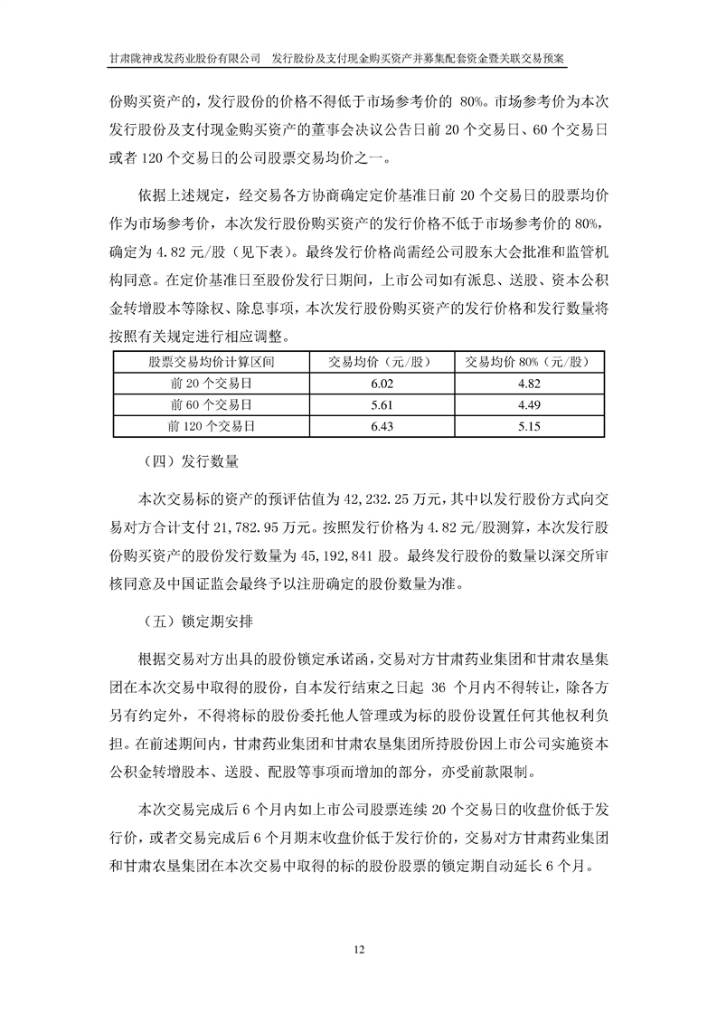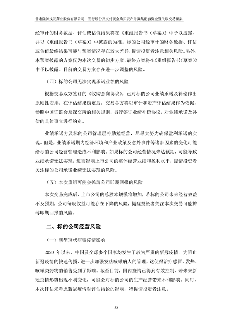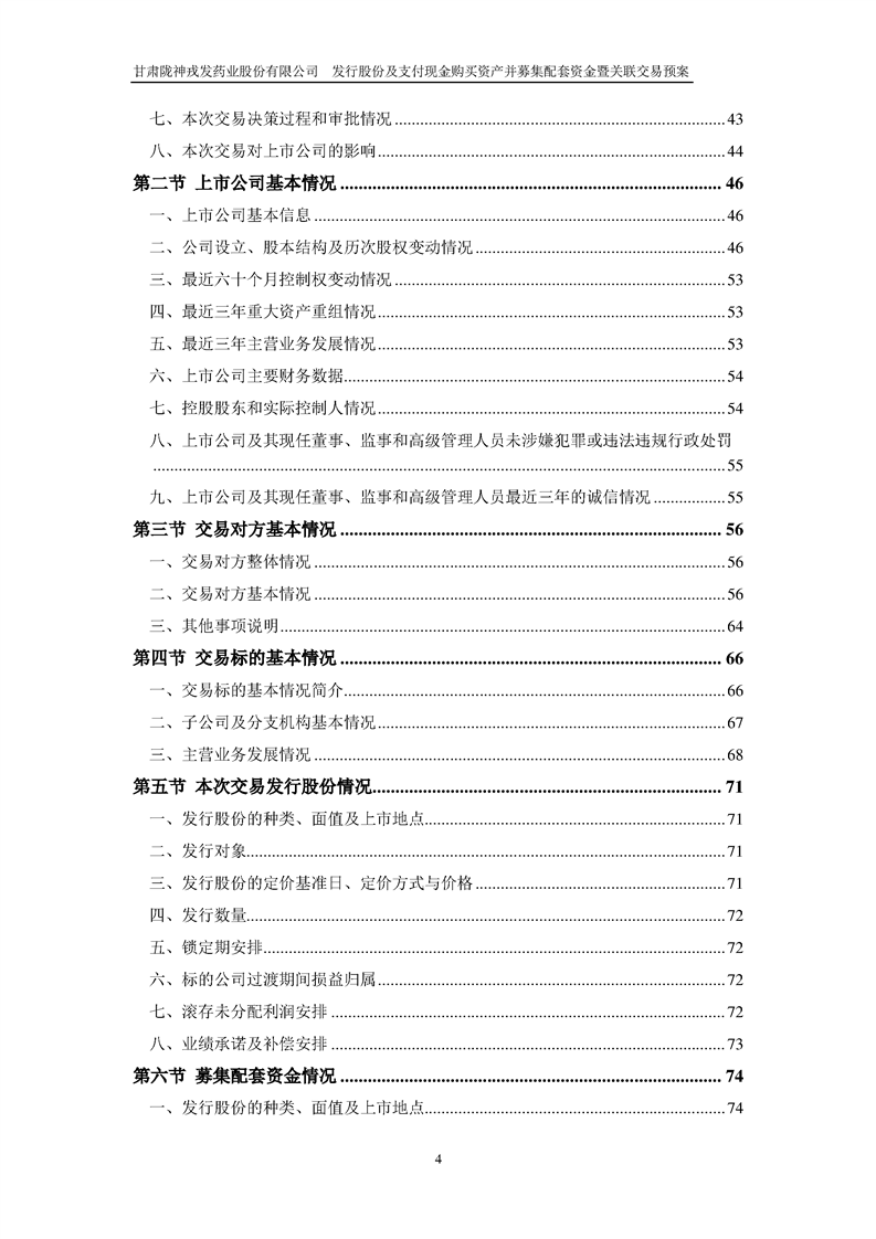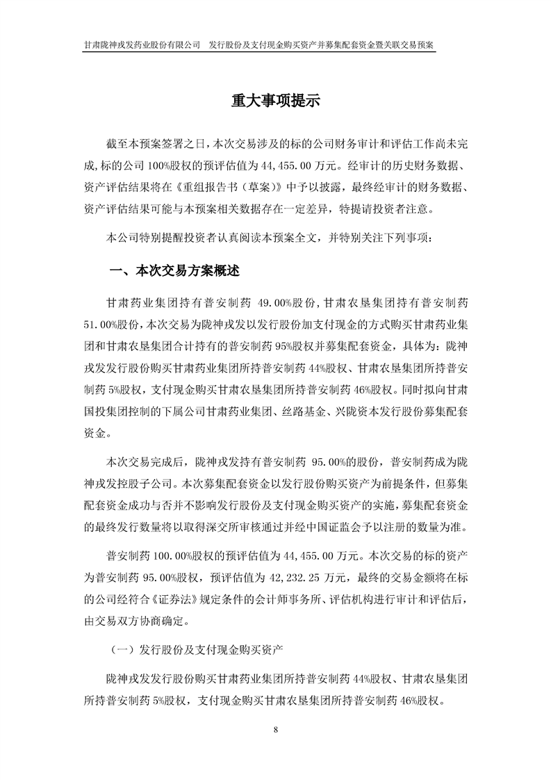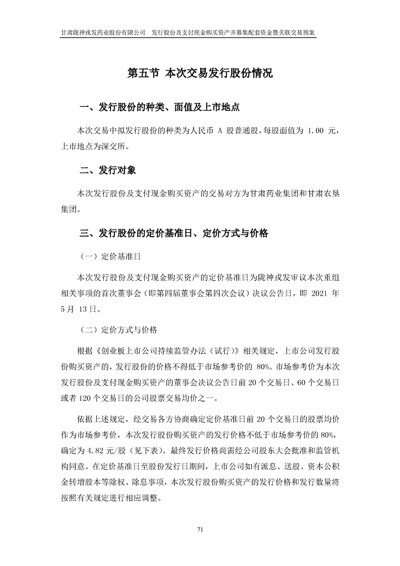 甘肅隴神戎發藥業股份有限公司發行股份及支付現金購買資產并募集配套資金暨關聯交易預案