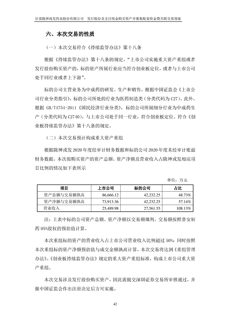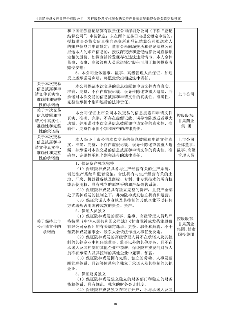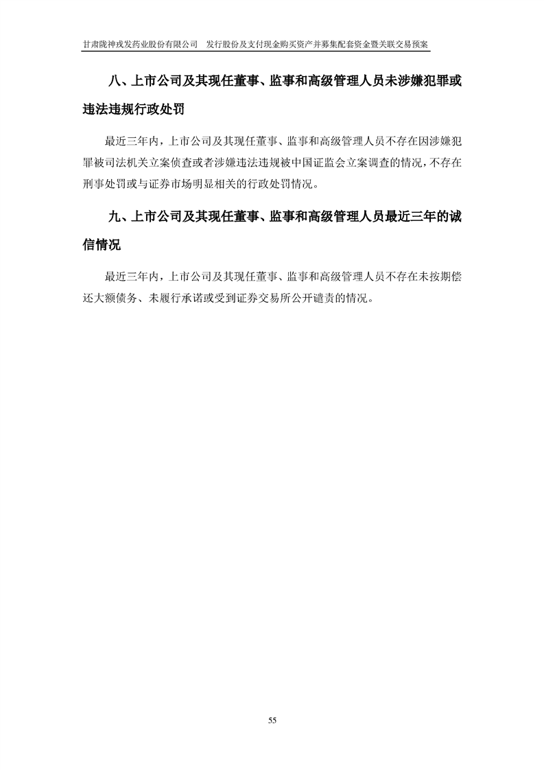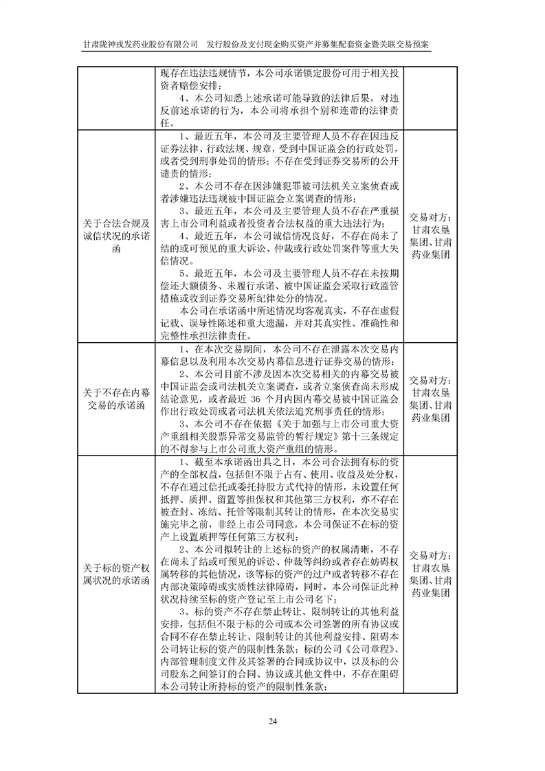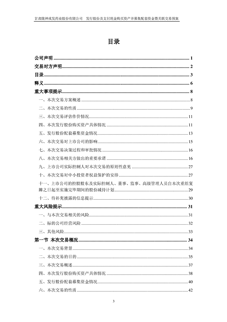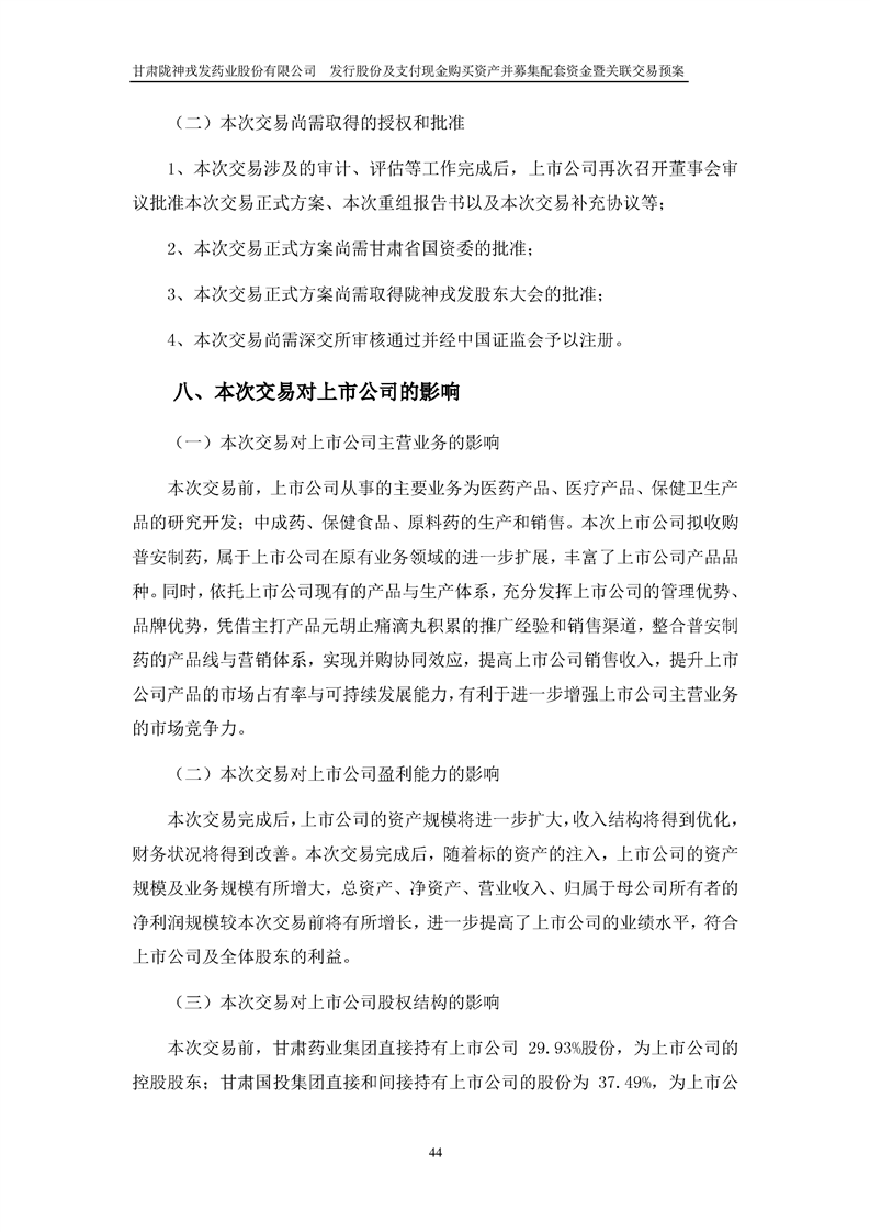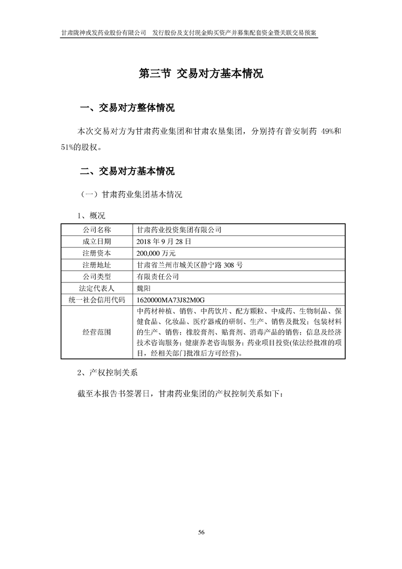甘肅隴神戎發藥業股份有限公司發行股份及支付現金購買資產并募集配套資金暨關聯交易預案