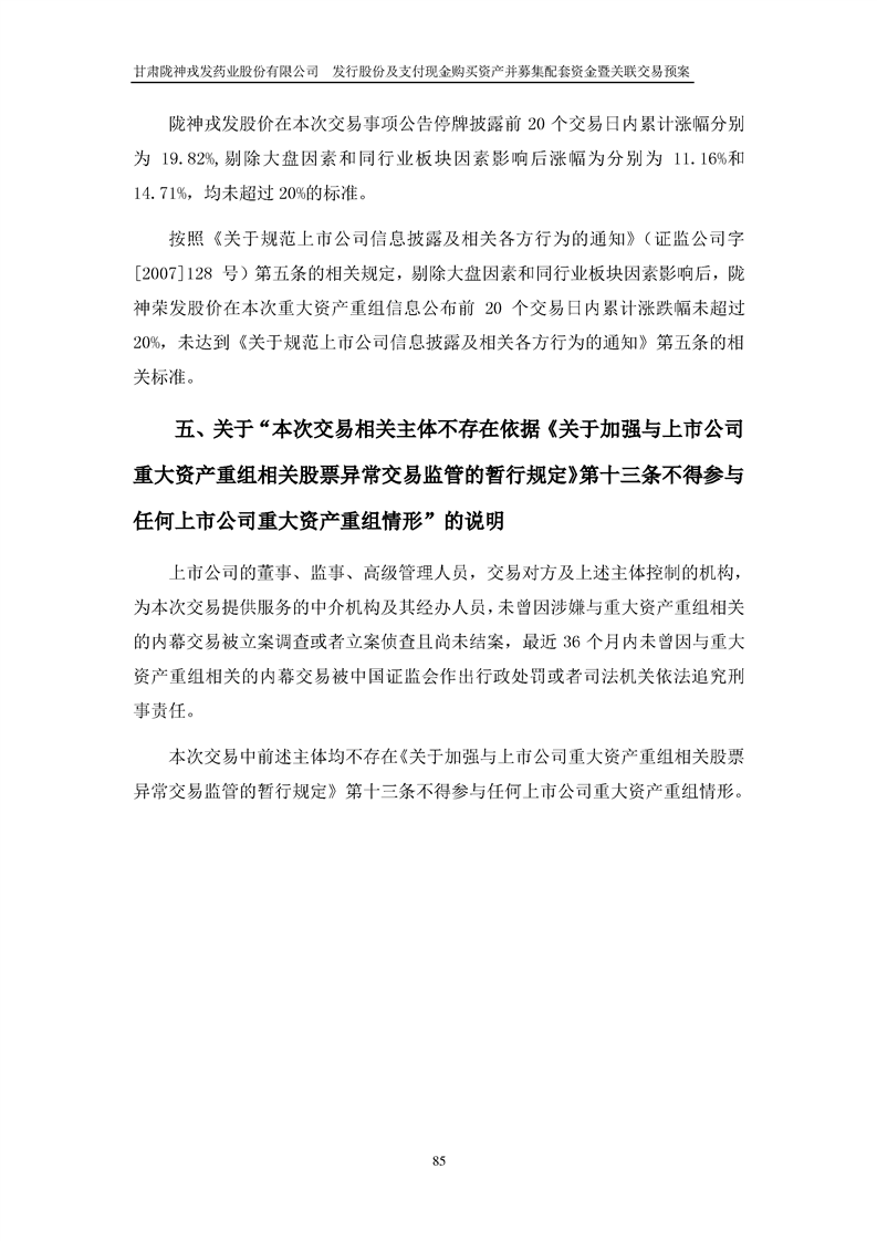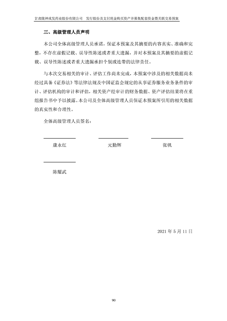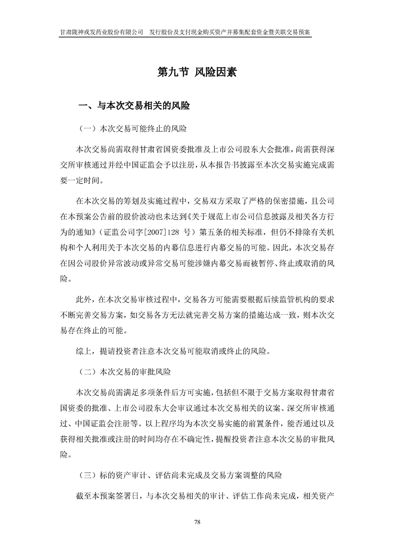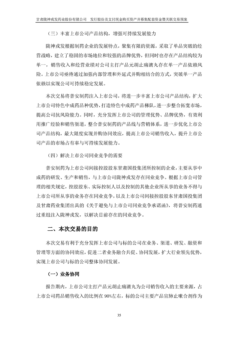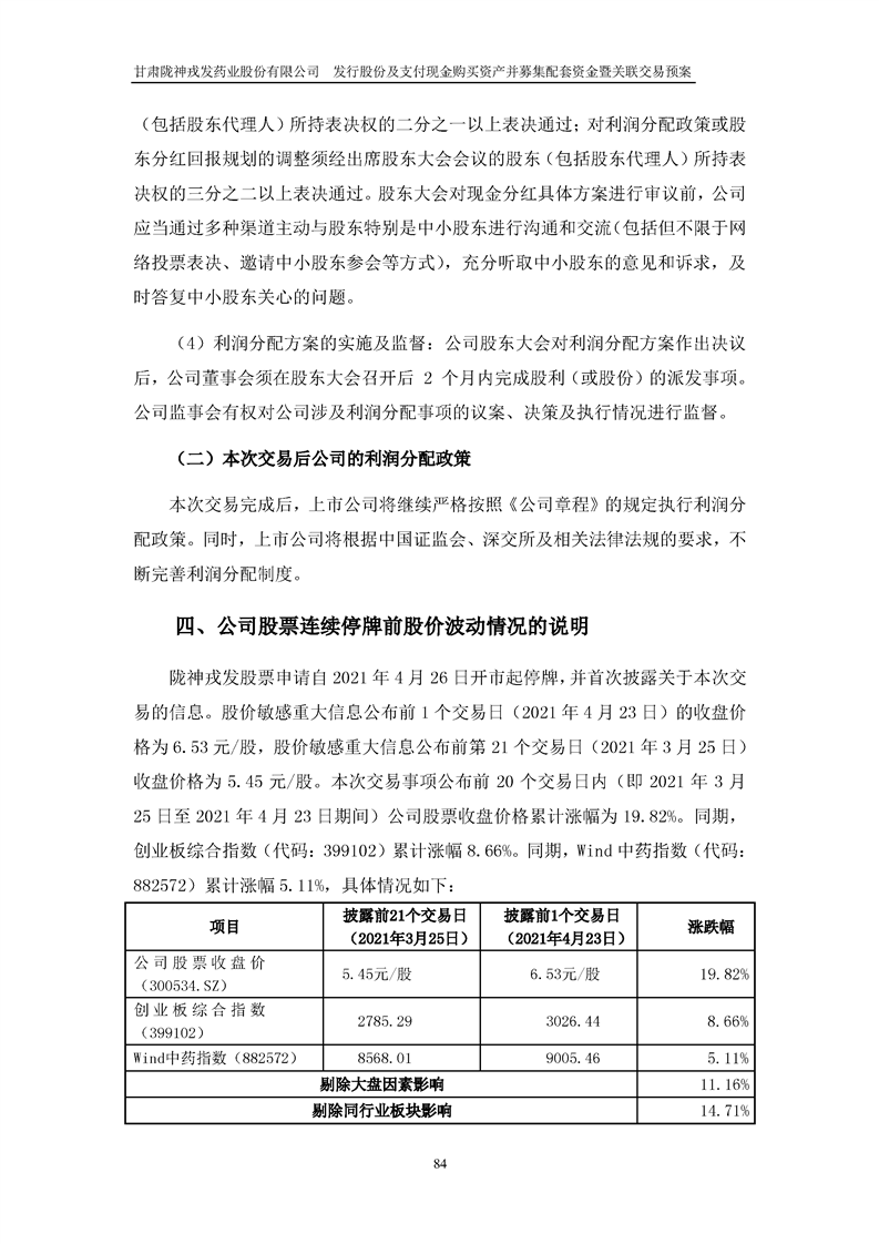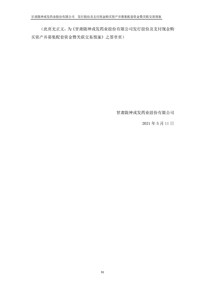甘肅隴神戎發藥業股份有限公司發行股份及支付現金購買資產并募集配套資金暨關聯交易預案