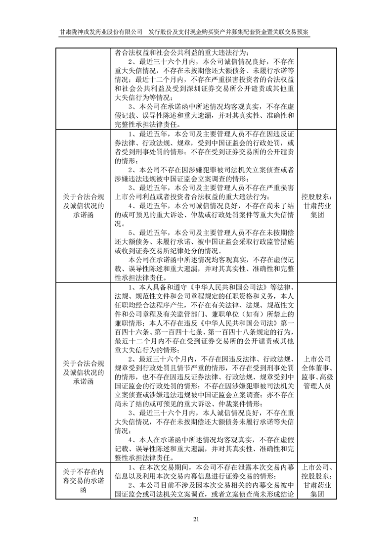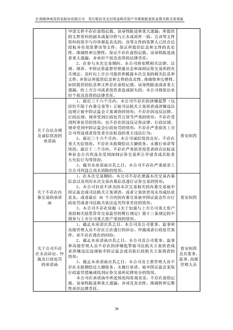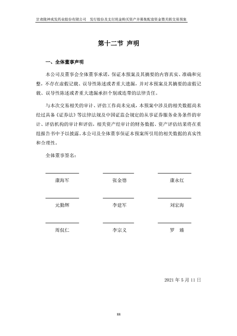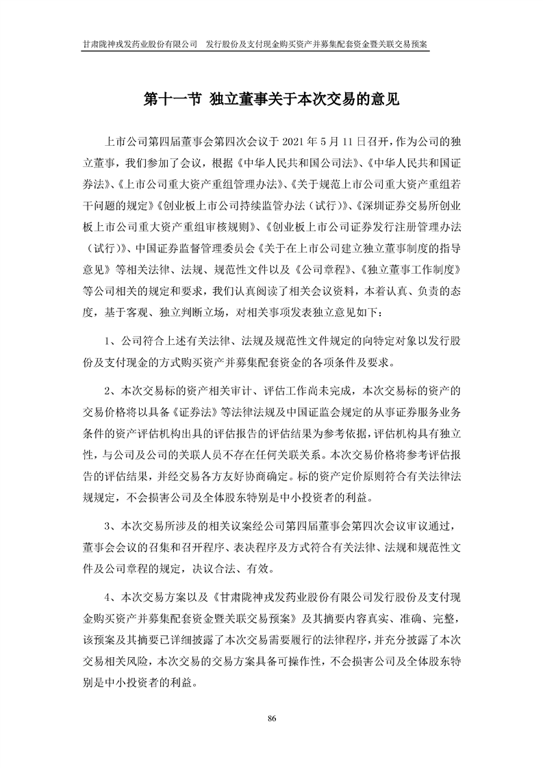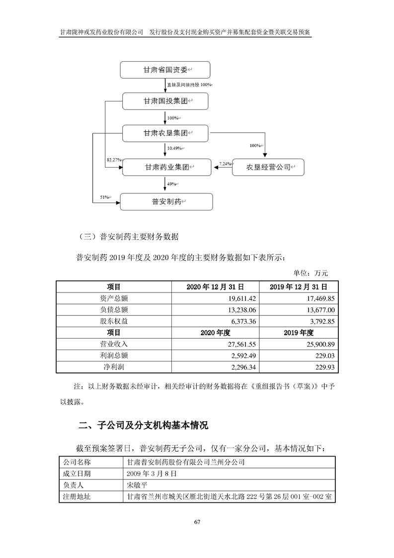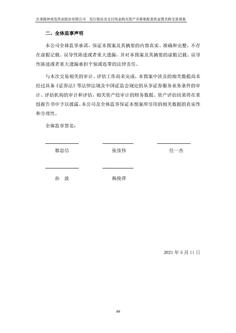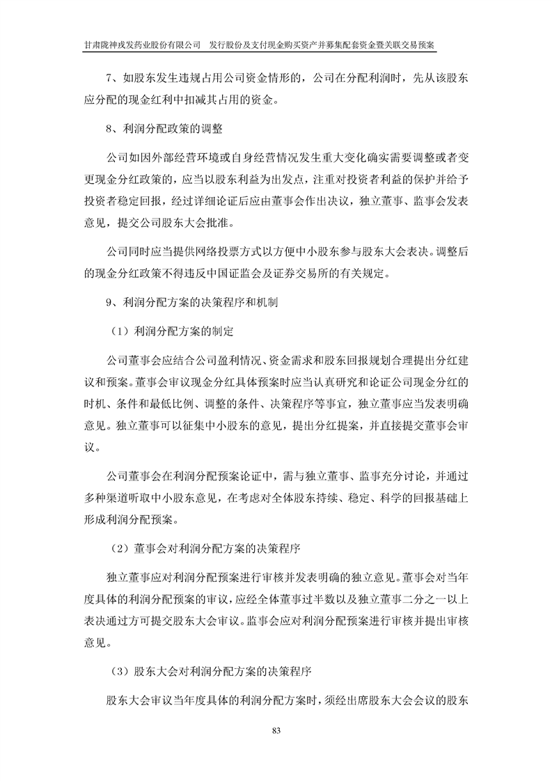 甘肅隴神戎發藥業股份有限公司發行股份及支付現金購買資產并募集配套資金暨關聯交易預案
