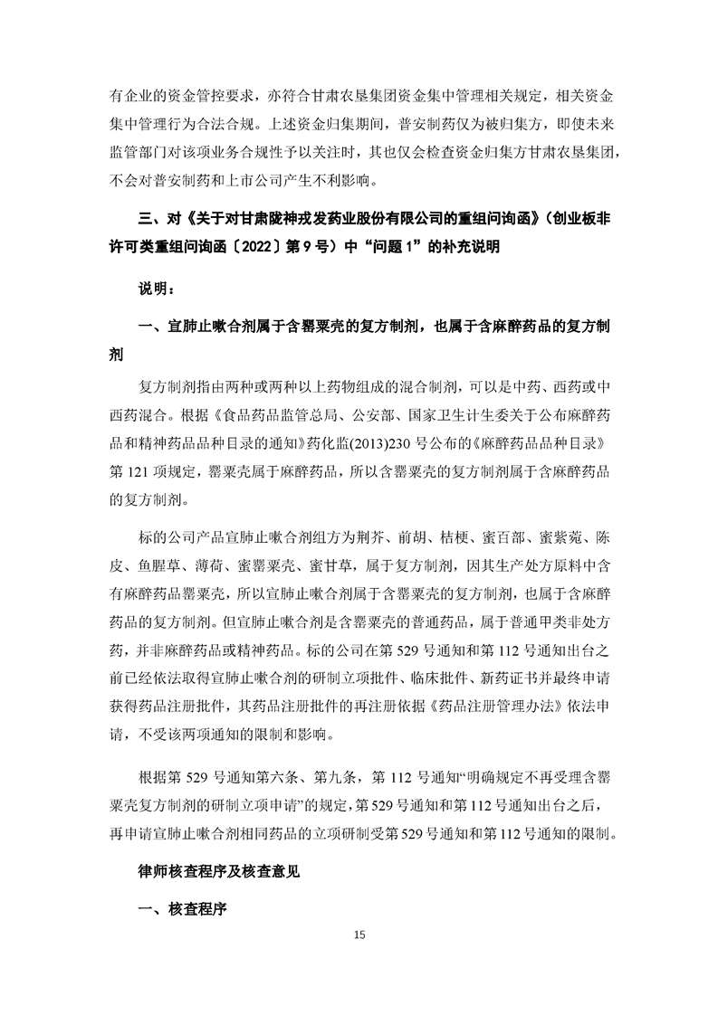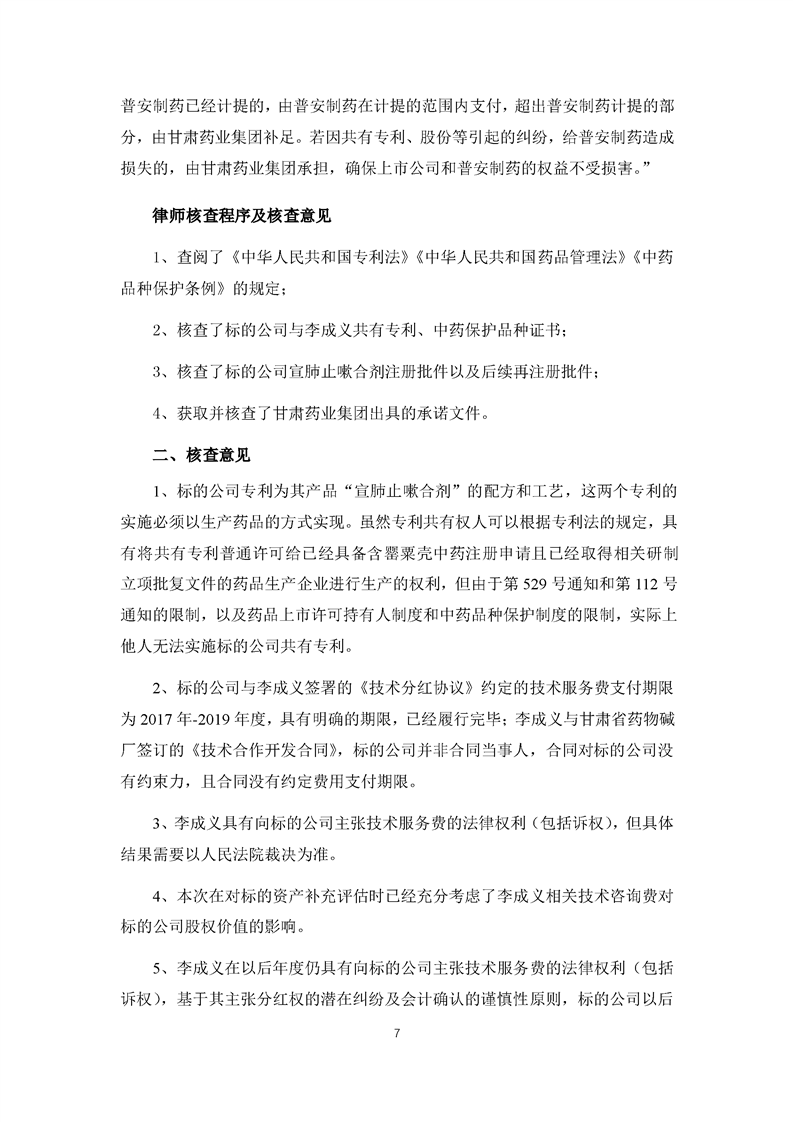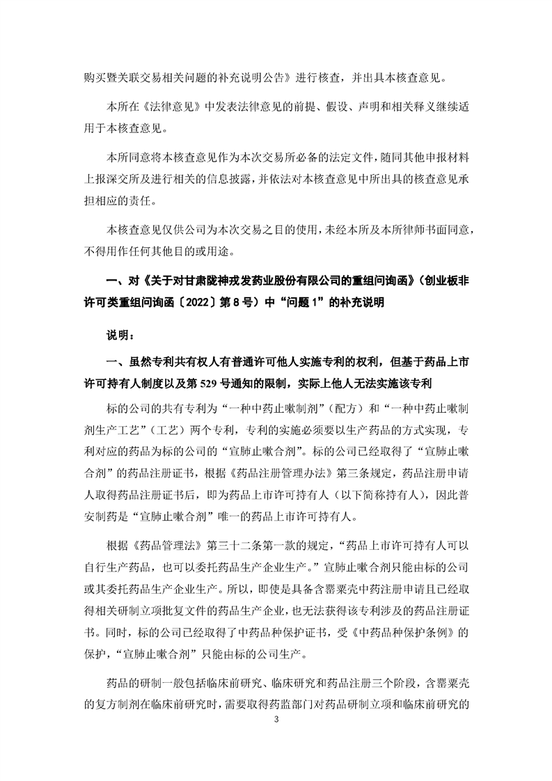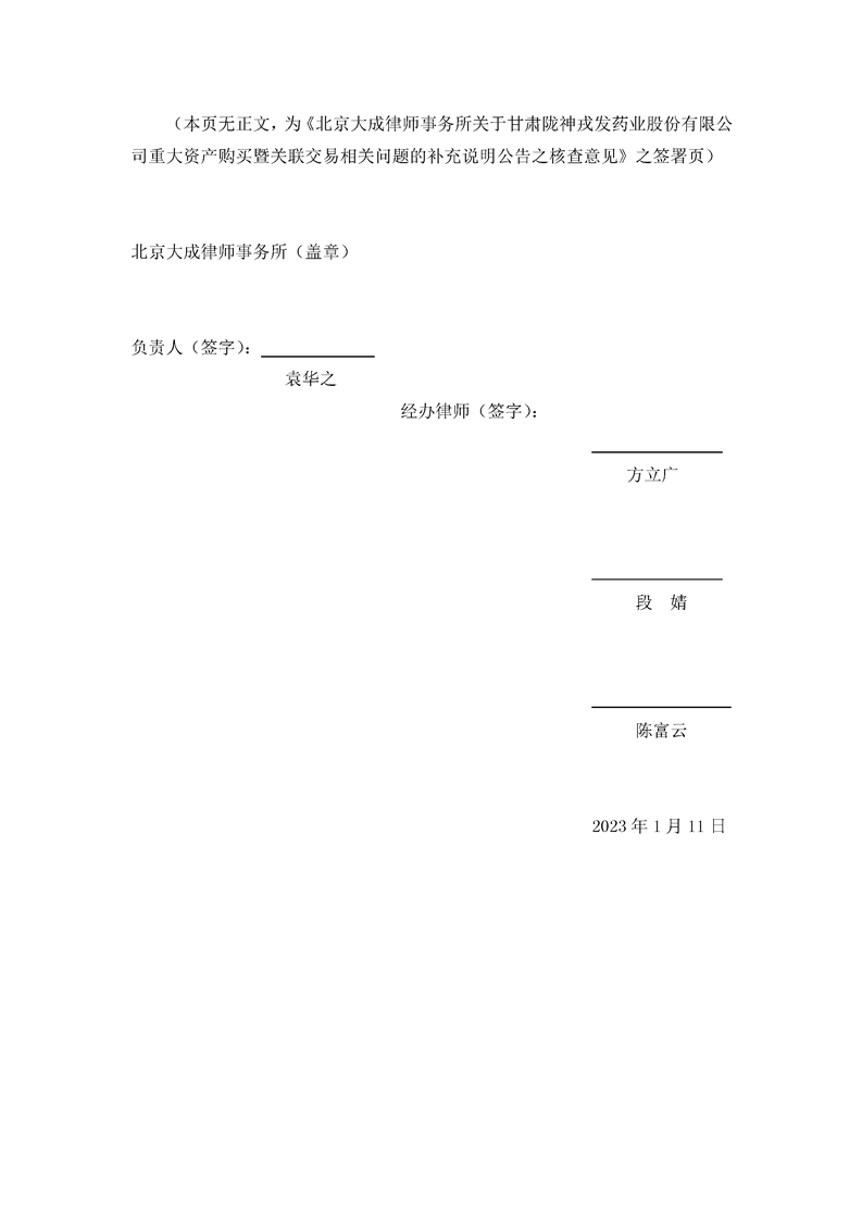 北京大成律師事務(wù)所關(guān)于甘肅隴神戎發(fā)藥業(yè)股份有限公司重大資產(chǎn)購買暨關(guān)聯(lián)交易相關(guān)問題的補充說明公告之核查意見