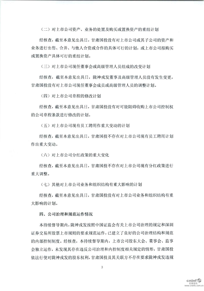 國泰君安證券股份有限公司關于甘肅省國有資產投資集團有限公司豁免要約收購公司股份的2019年第三季度持續督導意見