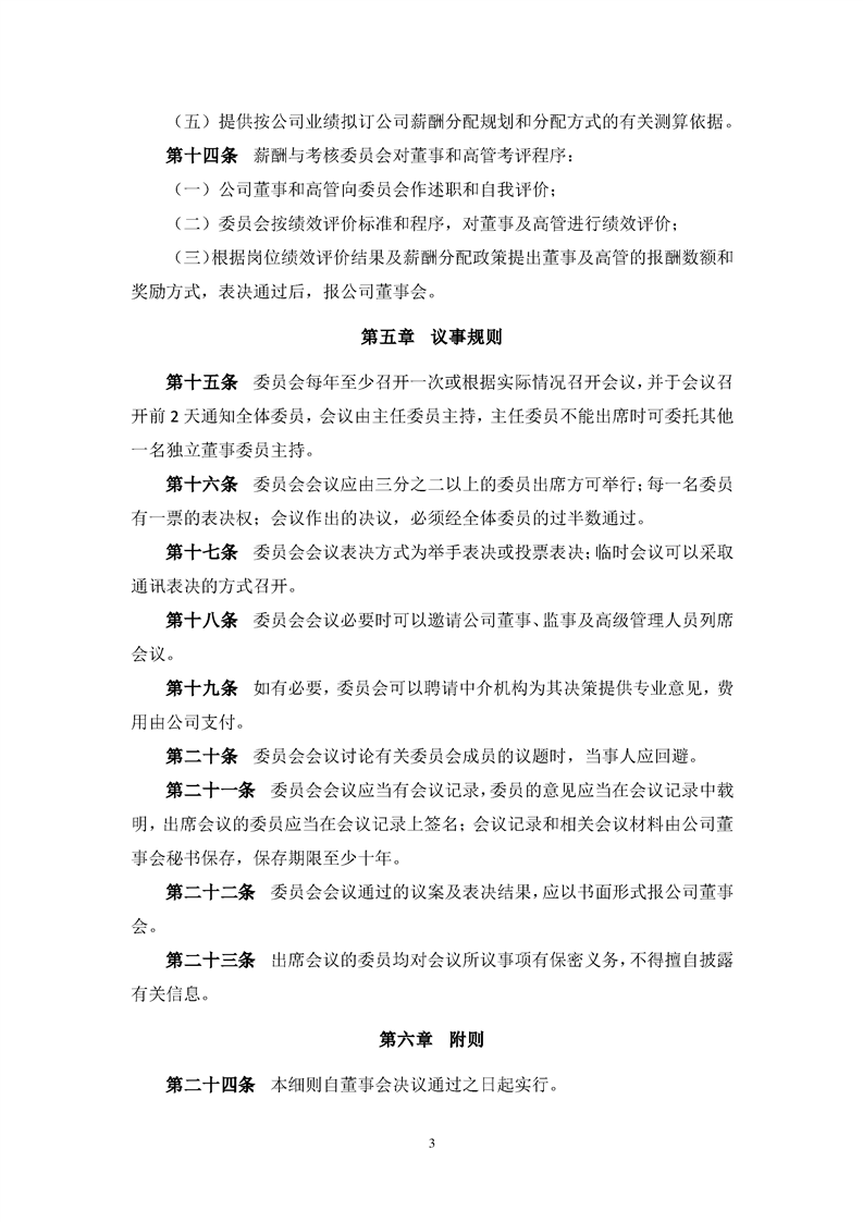 《董事會薪酬與考核委員會工作細則》(2023年12月)