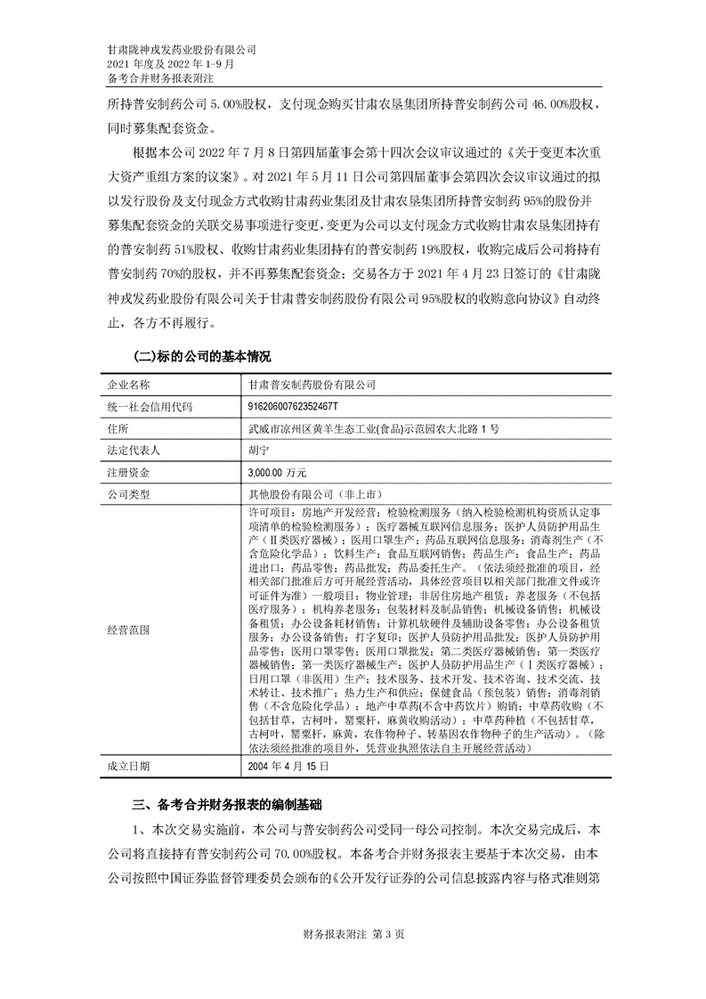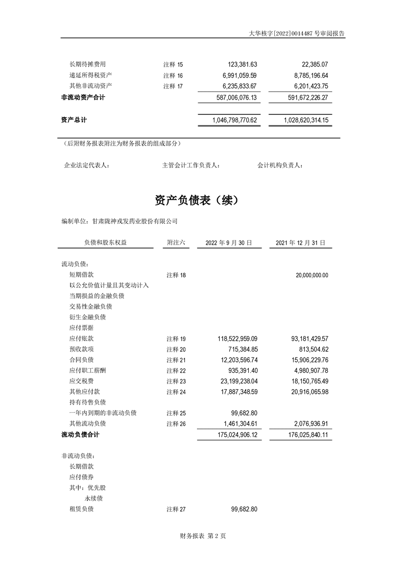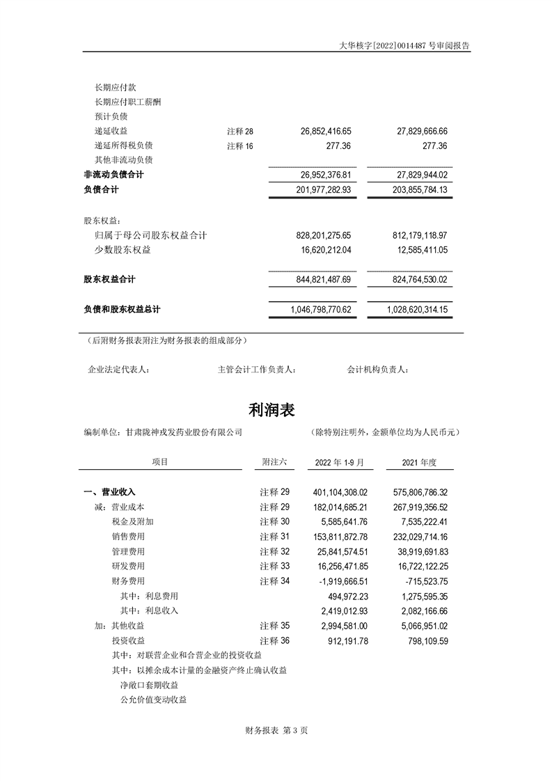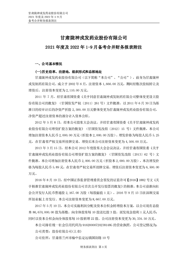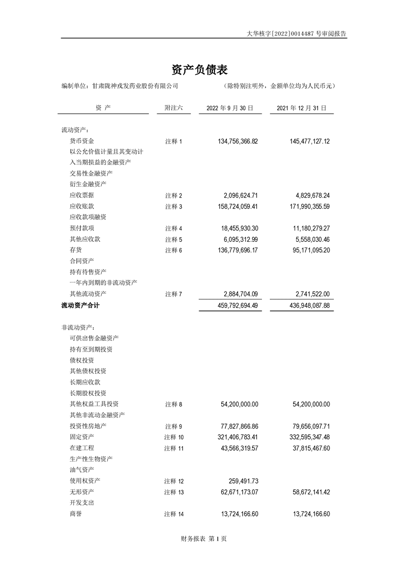 甘肅隴神戎發藥業股份有限公司備考財務報表審閱報告-大華核字[2022]0014487號