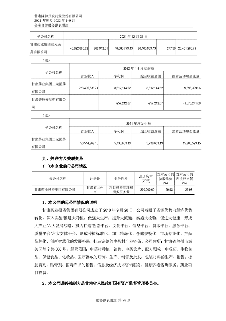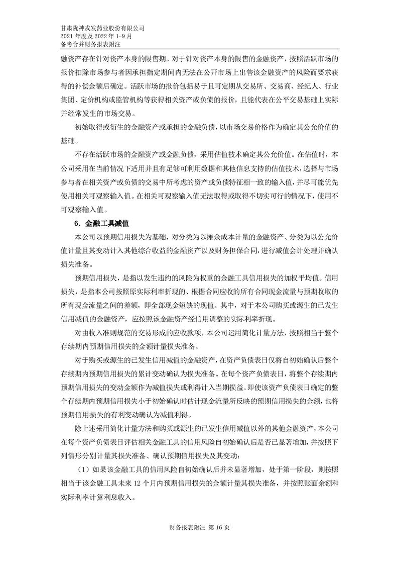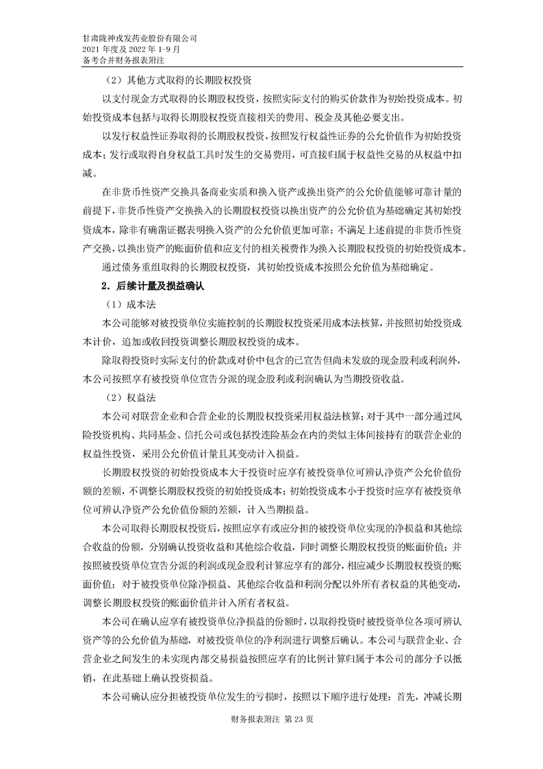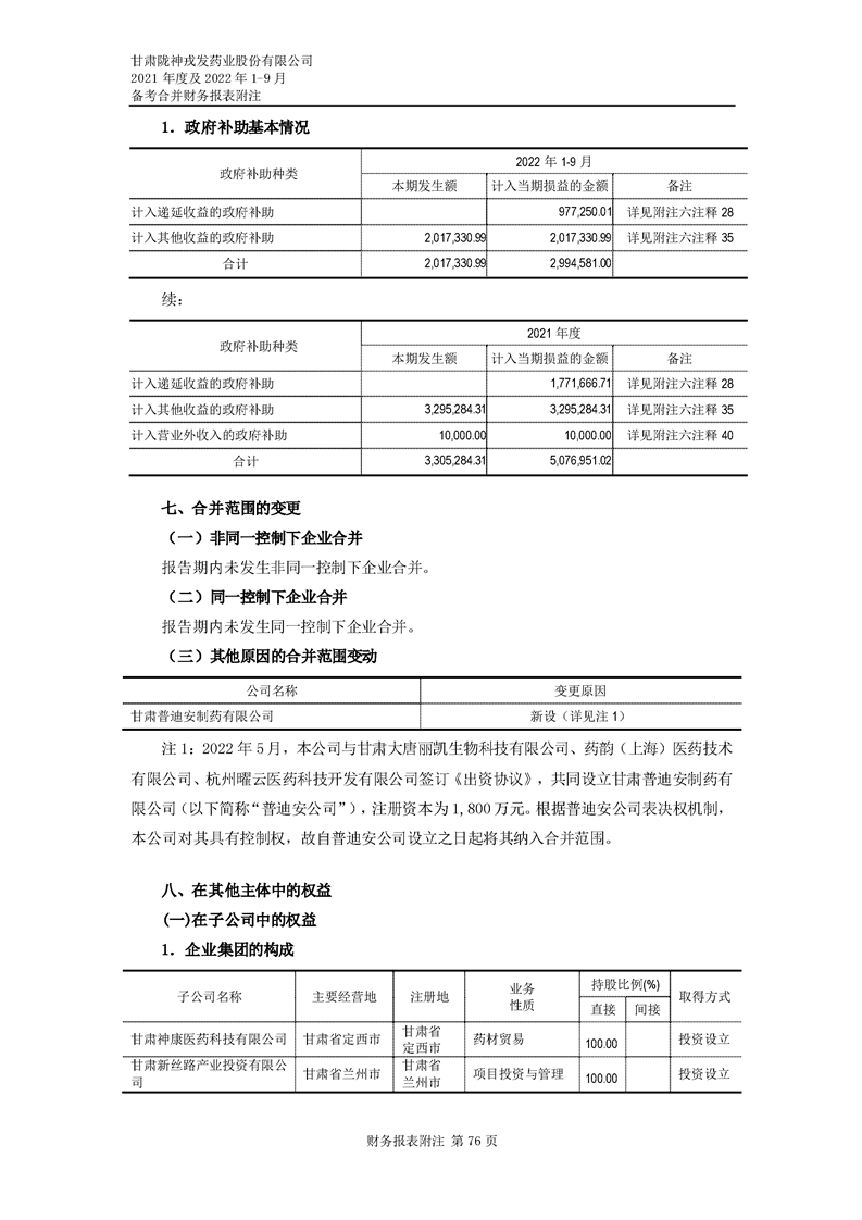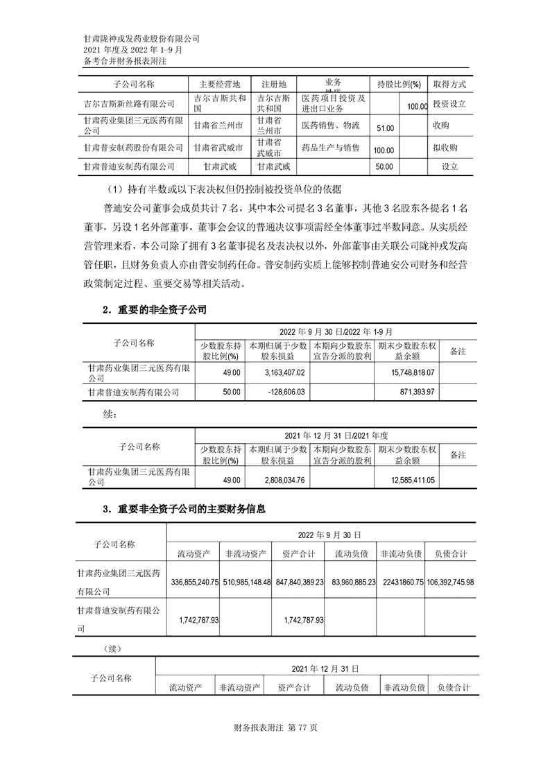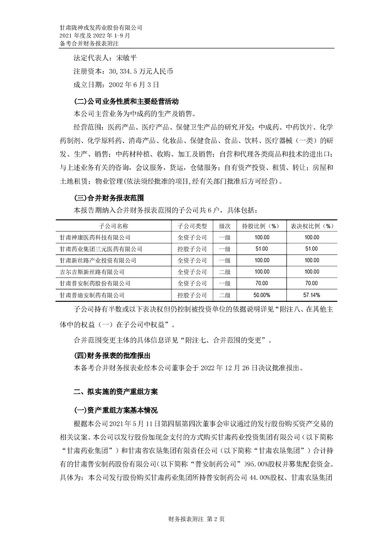甘肅隴神戎發藥業股份有限公司備考財務報表審閱報告-大華核字[2022]0014487號