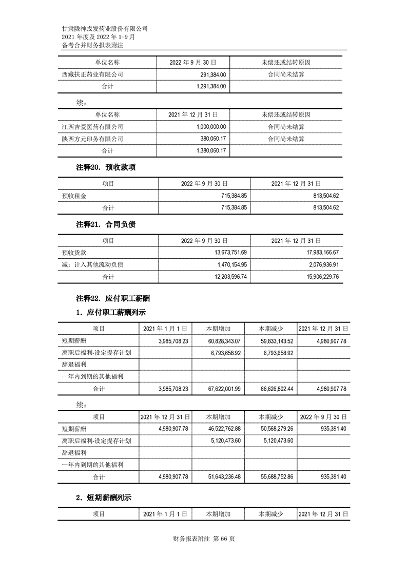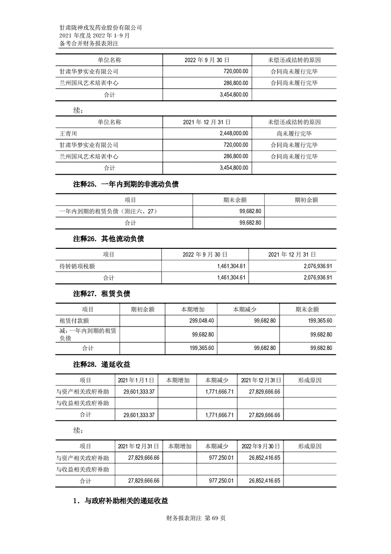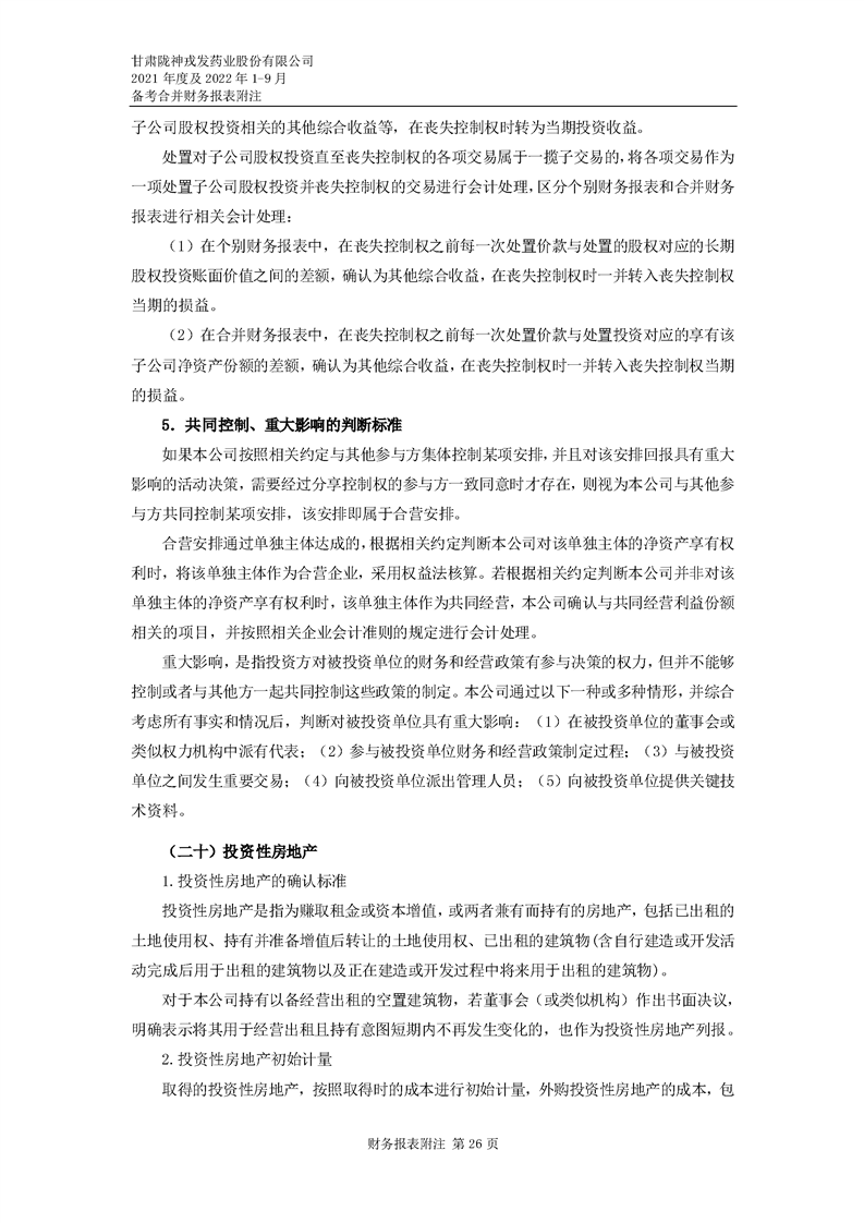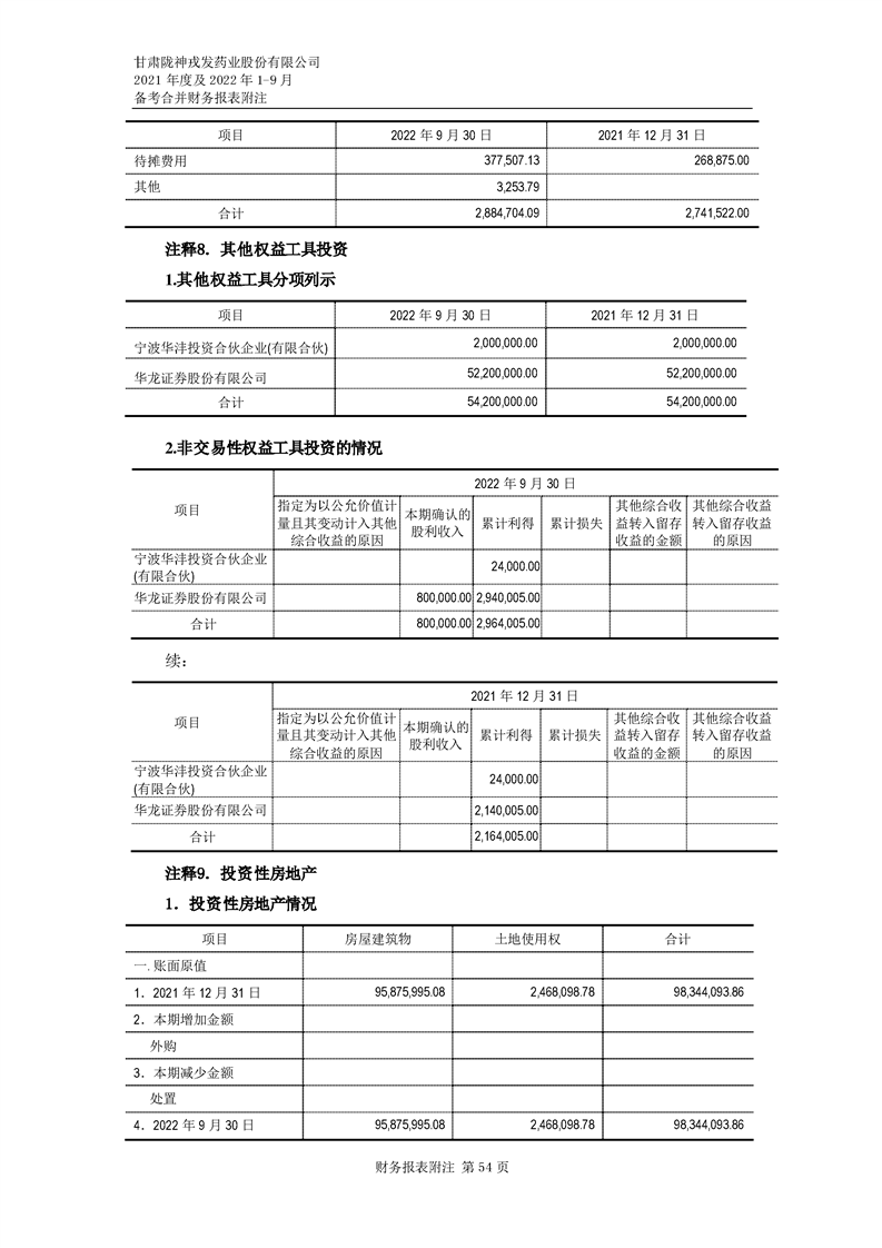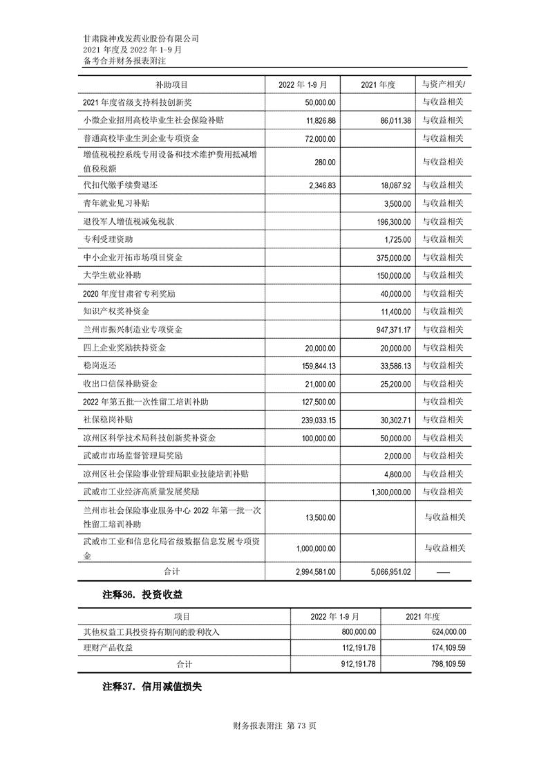 甘肅隴神戎發藥業股份有限公司備考財務報表審閱報告-大華核字[2022]0014487號