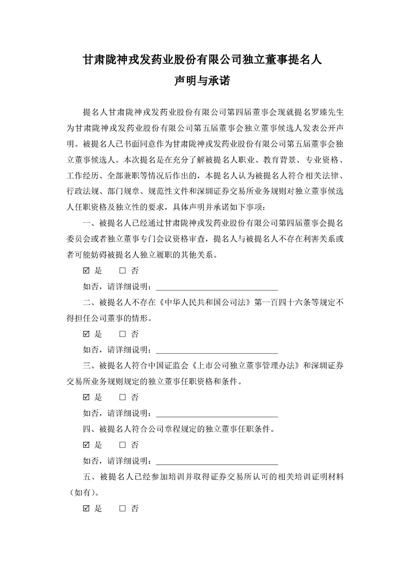 獨立董事提名人聲明與承諾(羅臻)
