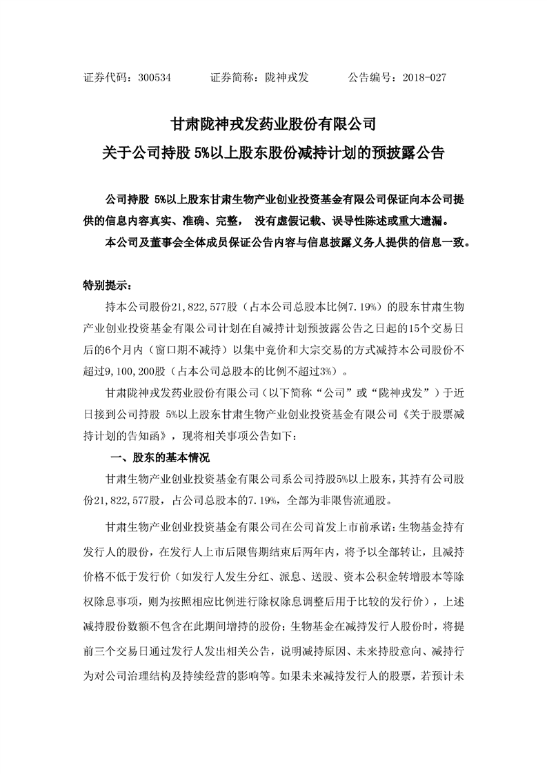 關于公司持股 5%以上股東股份減持計劃的預披露公告
