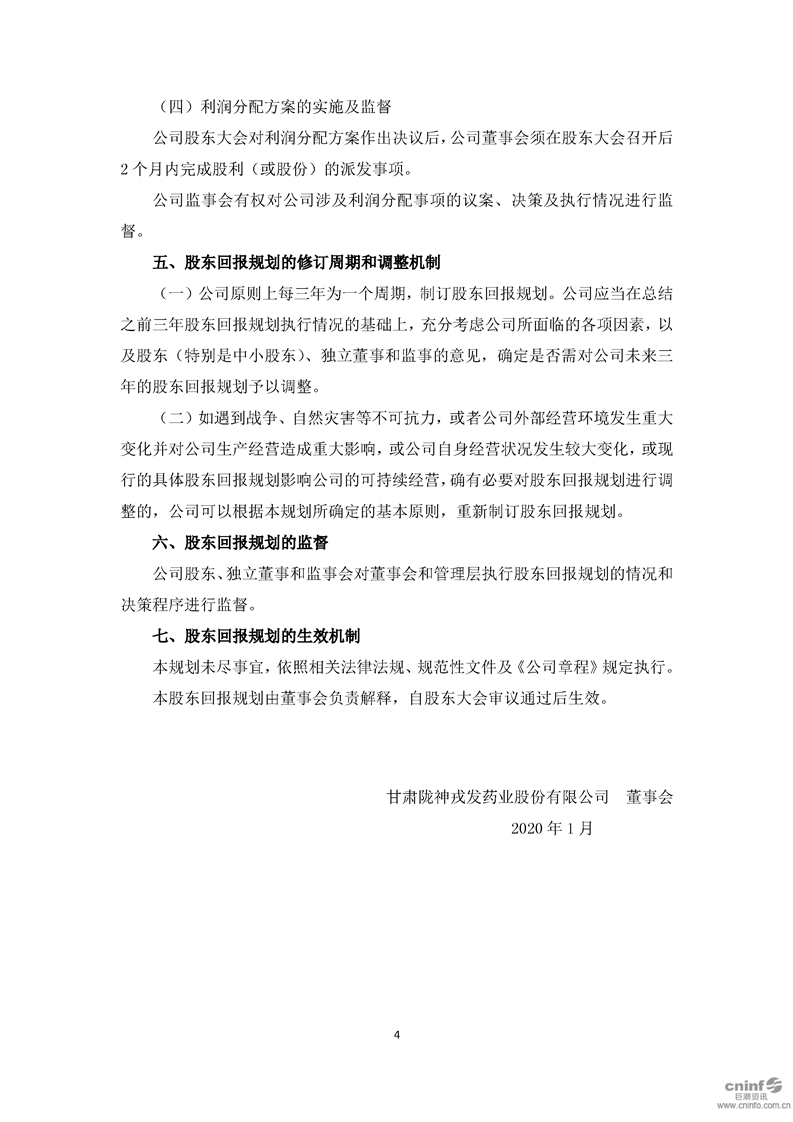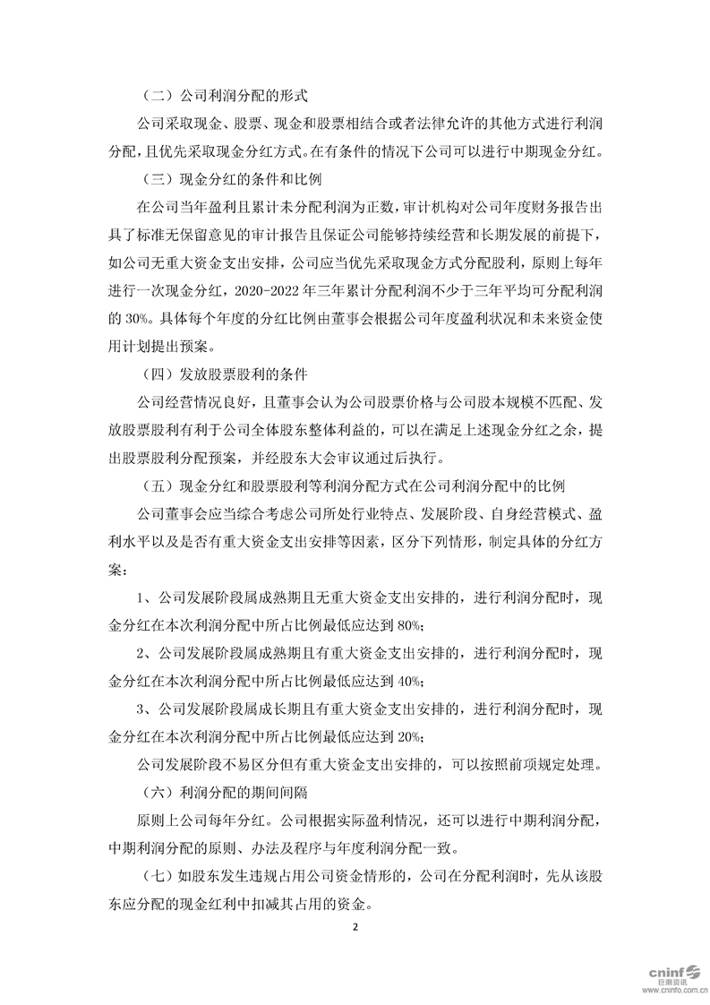 未來股東回報規劃(2020-2022年)