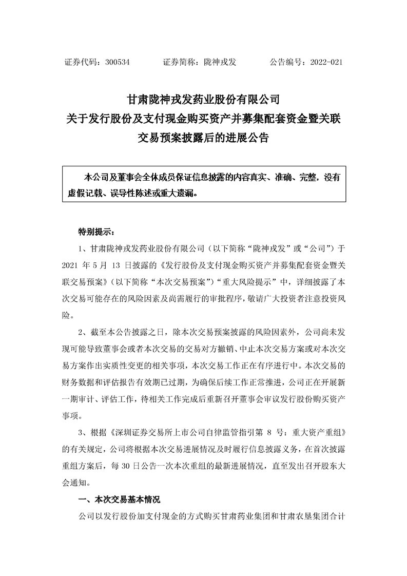 關于發行股份及支付現金購買資產并募集配套資金暨關聯交易預案披露后的進展公告