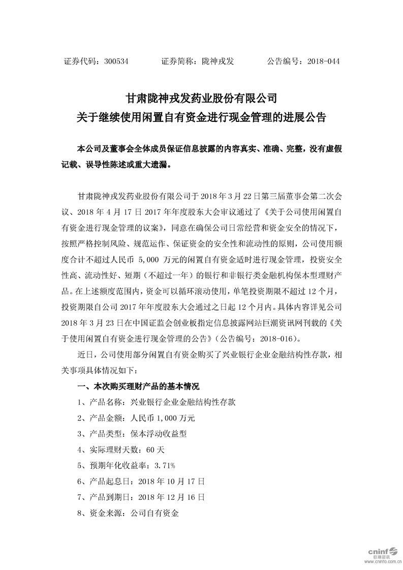關于繼續使用閑置自有資金進行現金管理的進展公告