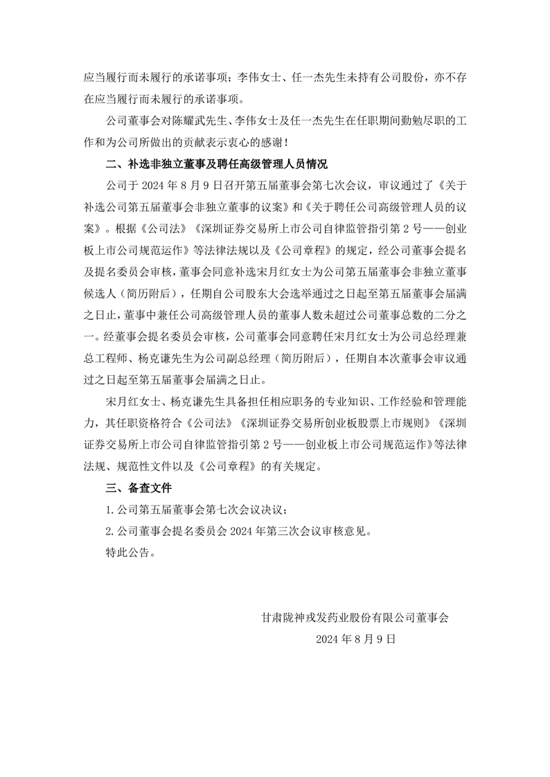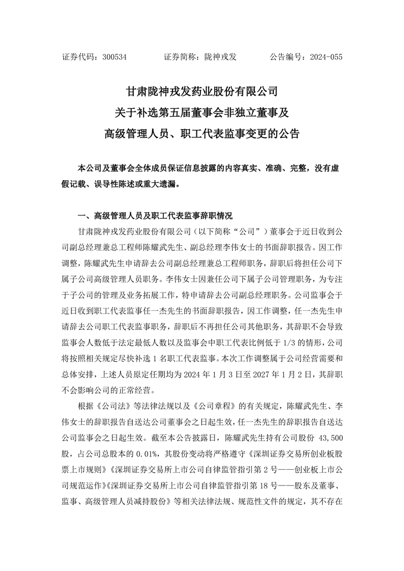 關于補選第五屆董事會非獨立董事及高級管理人員、職工代表監事變更的公告