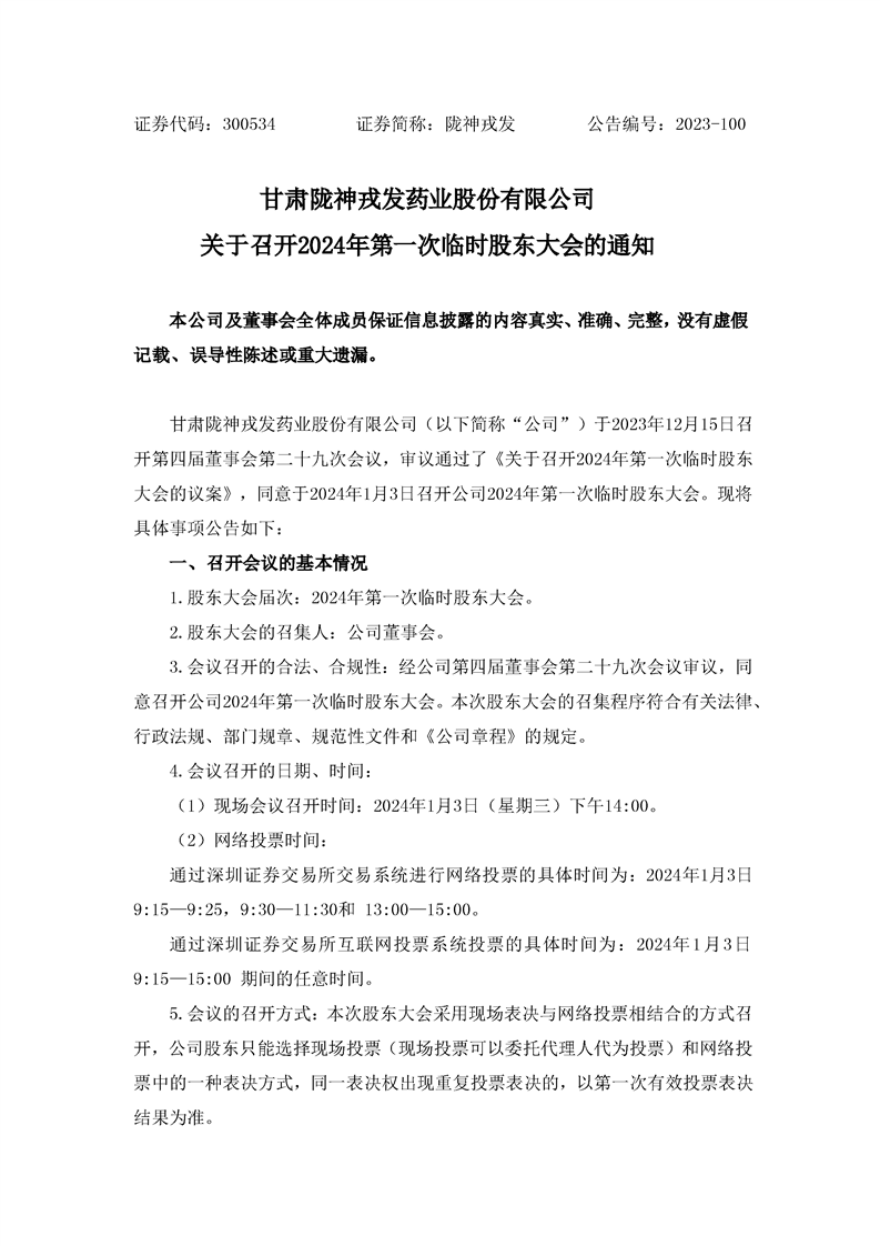 關(guān)于召開(kāi)2024年第一次臨時(shí)股東大會(huì)的通知