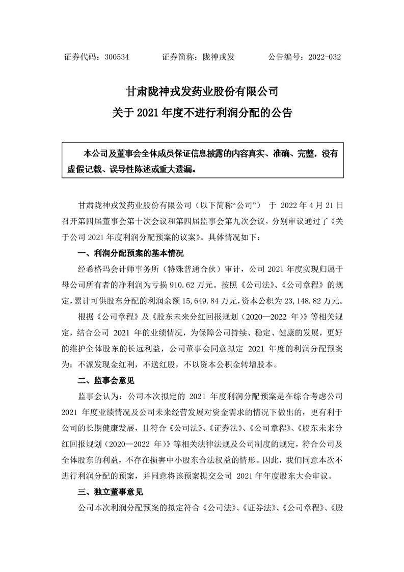 關于2021年度不進行利潤分配的公告