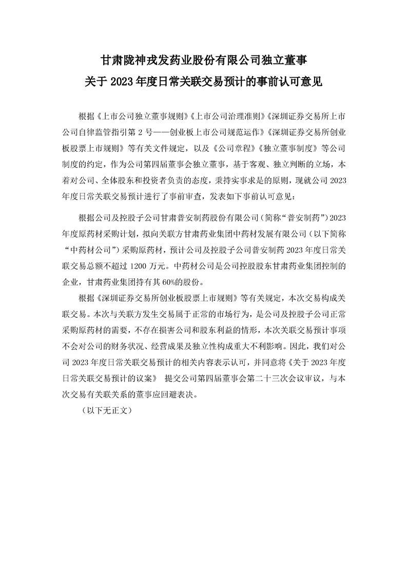 獨立董事關于2023年度日常關聯交易預計的事前認可意見