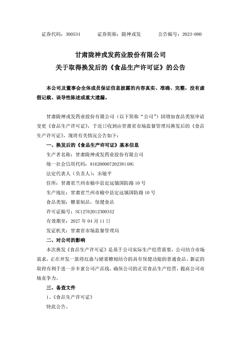 關于取得換發后的《食品生產許可證》的公告