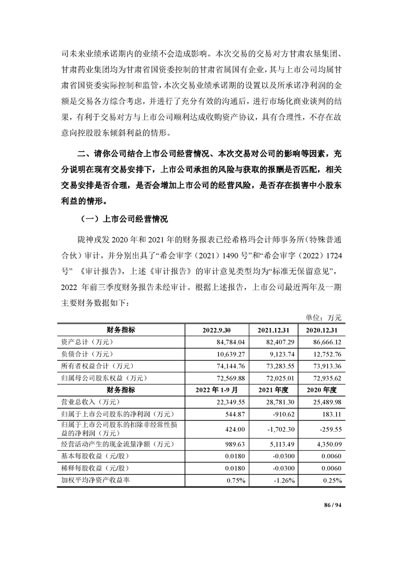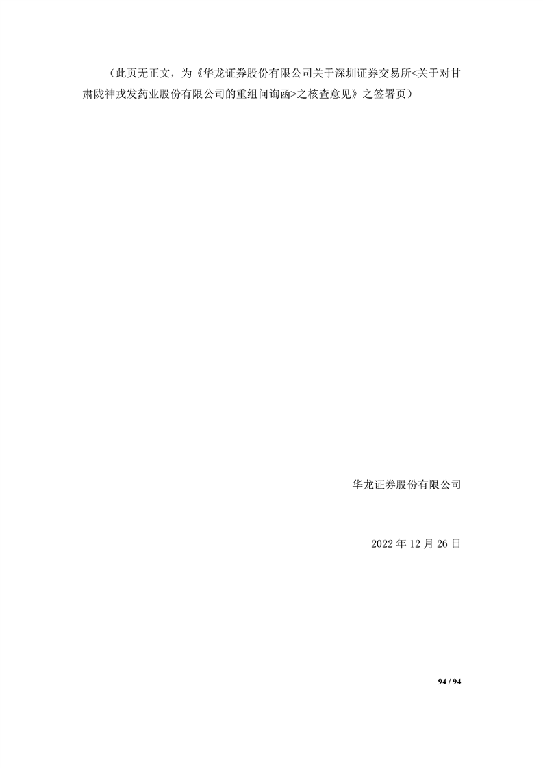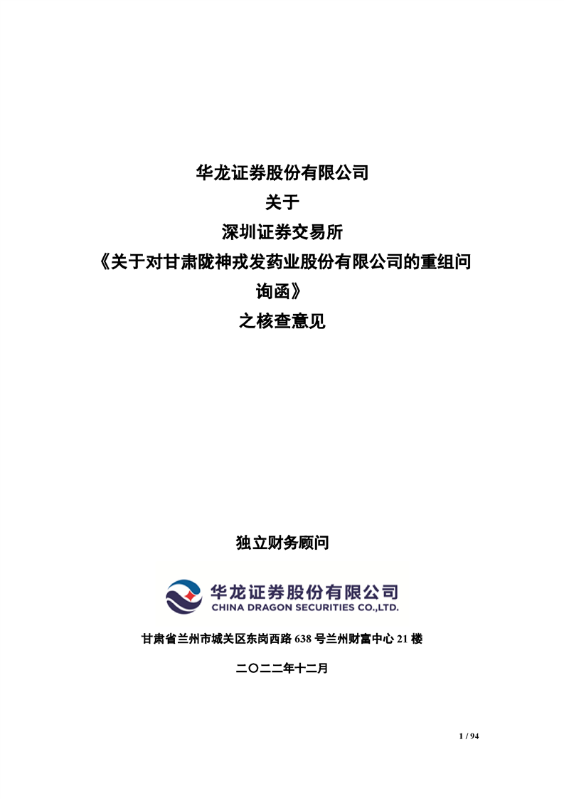 華龍證券股份有限公司關于深圳證券交易所《關于對甘肅隴神戎發藥業股份有限公司的重組問詢函》之核查意見