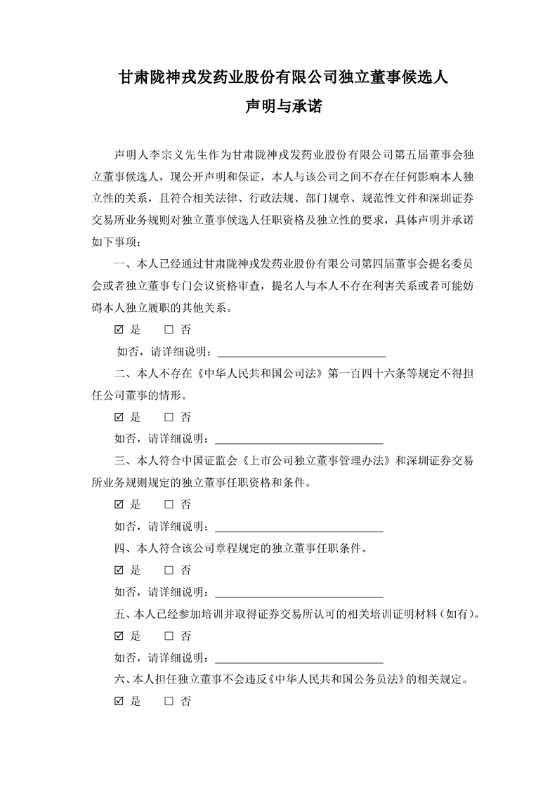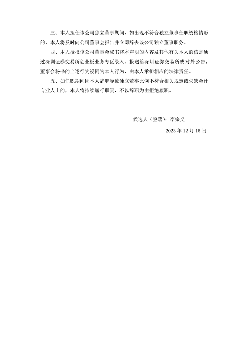 獨立董事候選人聲明與承諾(李宗義)
