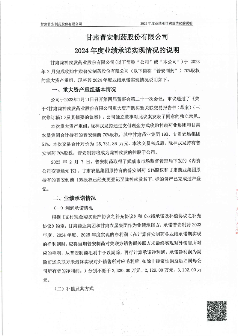 關于甘肅普安制藥股份有限公司業績承諾實現情況專項審核意見