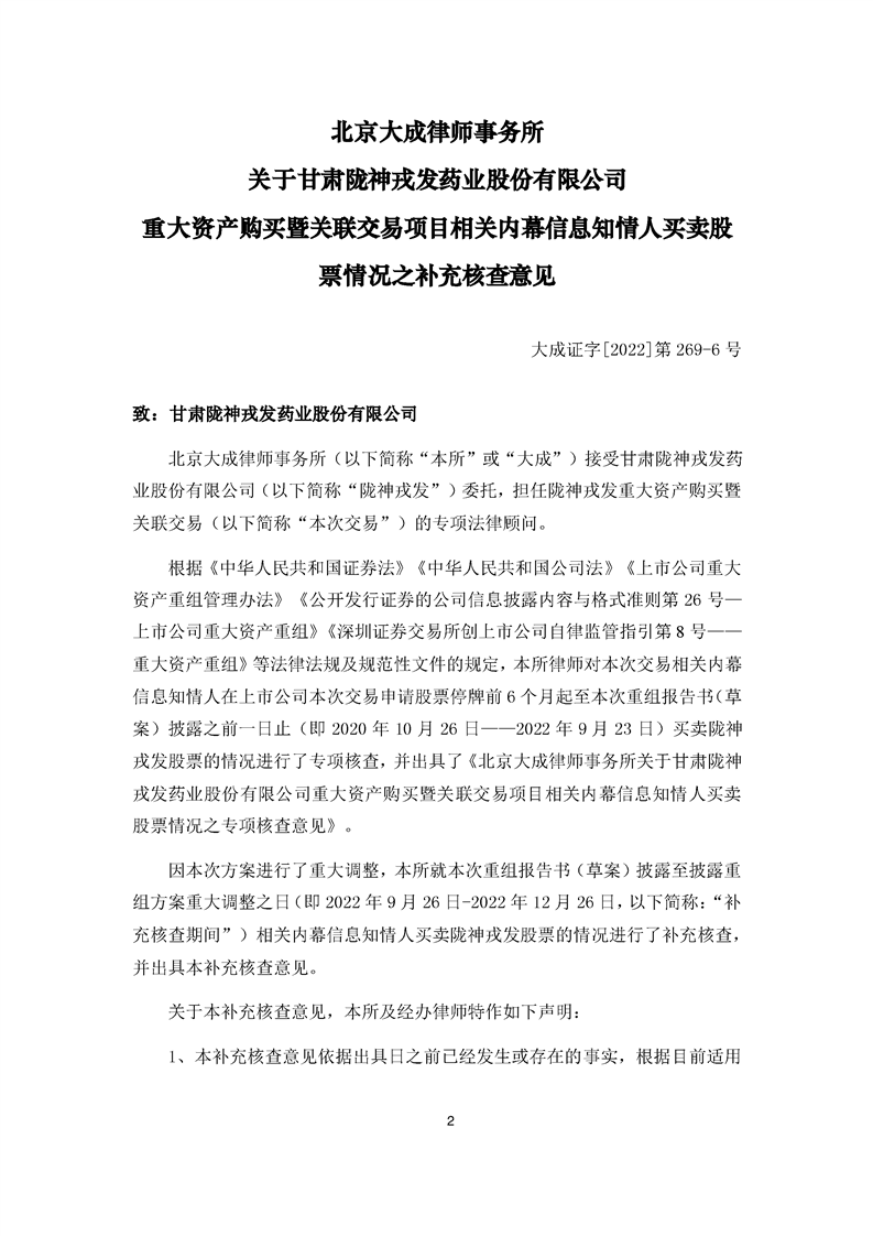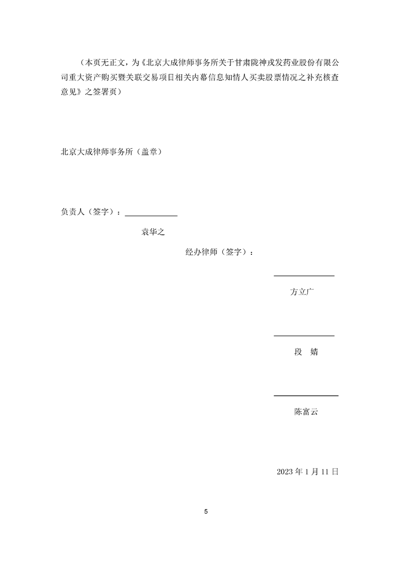 北京大成律師事務所關于本次重組內幕信息知情人買賣股票補充核查意見