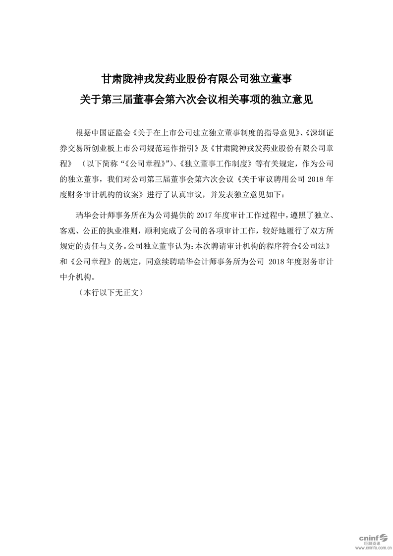 獨立董事 關于第三屆董事會第六次會議相關事項的獨立意見